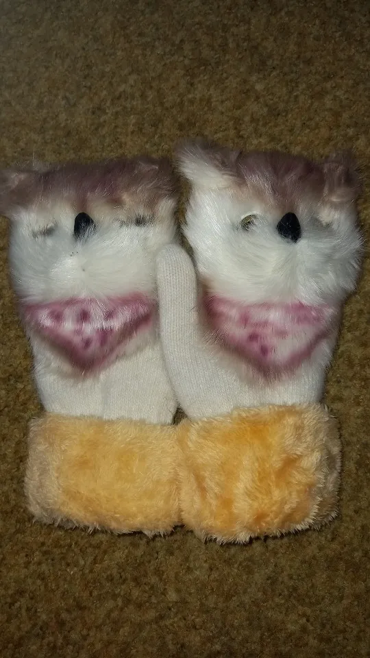 Теплые милые перчатки с отворотами для девочек с животными, плюшевы...