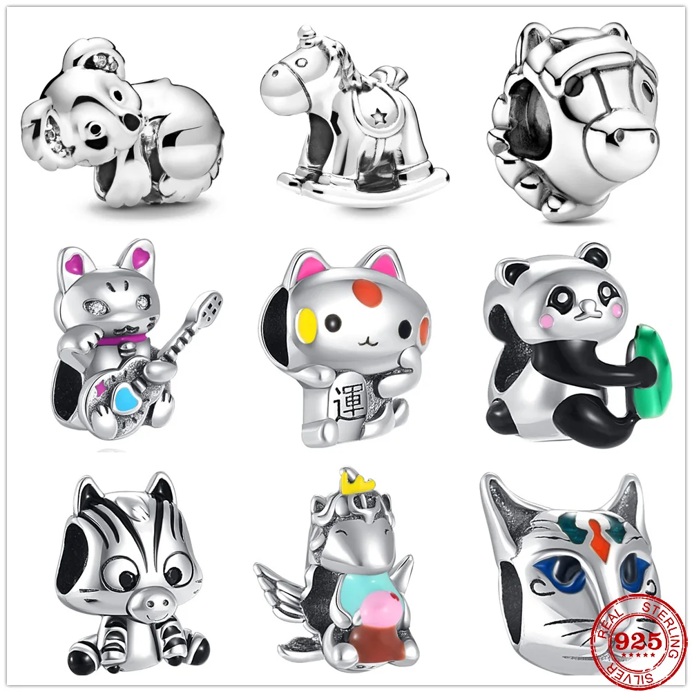 Бусины-шармы женские из серебра 925 пробы в виде животных, тигра, панды, египетского кота, лошади