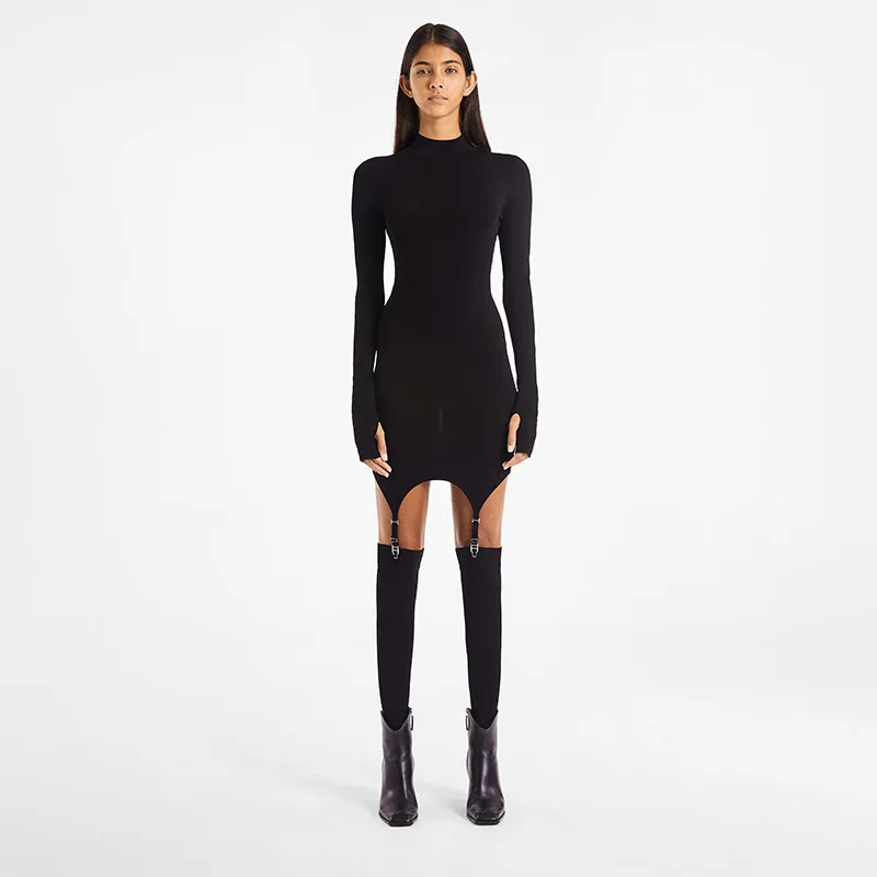 Платье-чулок Kylie Jenner с длинными рукавами и высоким воротом