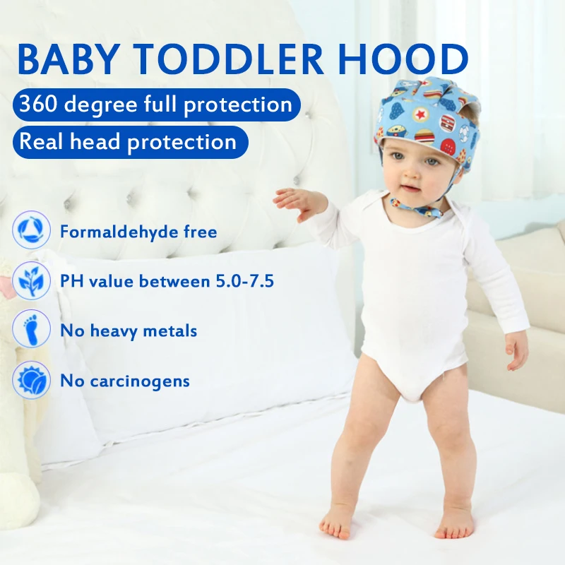 Детская шапка-шлем с защитой от падения, шапка для прогулок для малышей, амортизирующая дышащая шапка с принтом в виде футбольного мяча, однотонная шапка для защиты головы