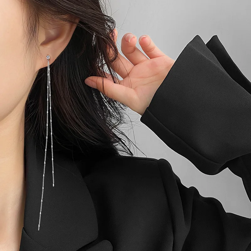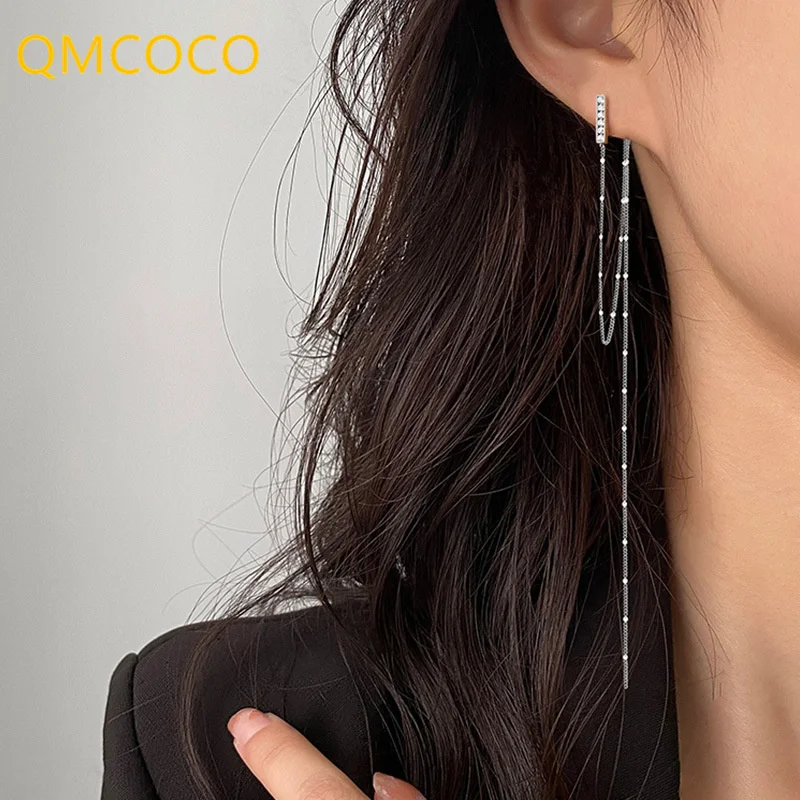 QMCOCO геометрические 925 Серебряные Длинные Стильные серьги креативный дизайн Асимметричные кисточки серьги Модные женские ювелирные изделия аксессуары