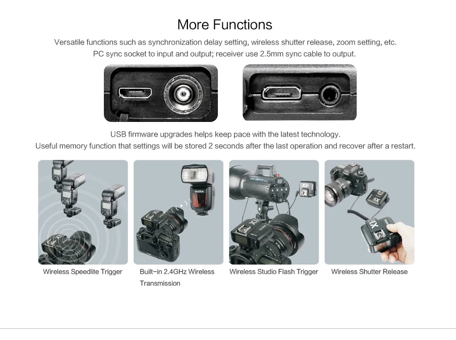 Приемник может контролировать камеры съемки через 2,5 мм спуск затвора интерфейс