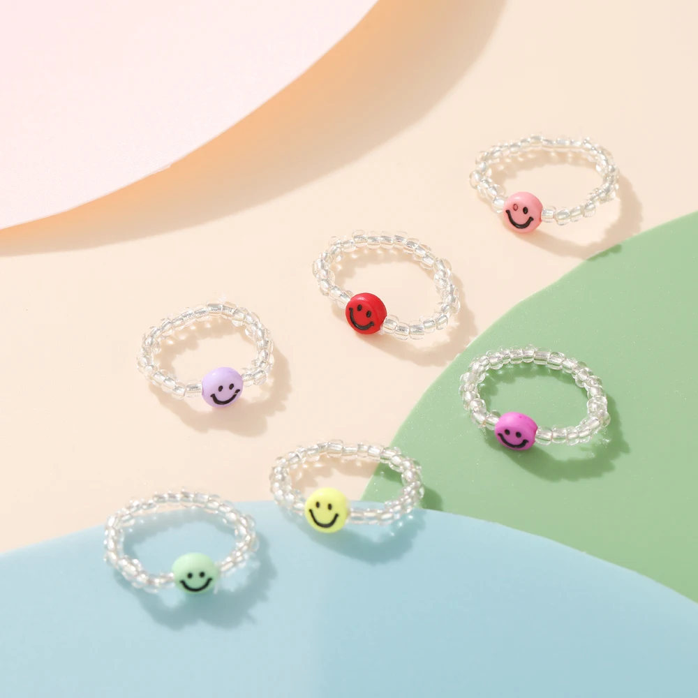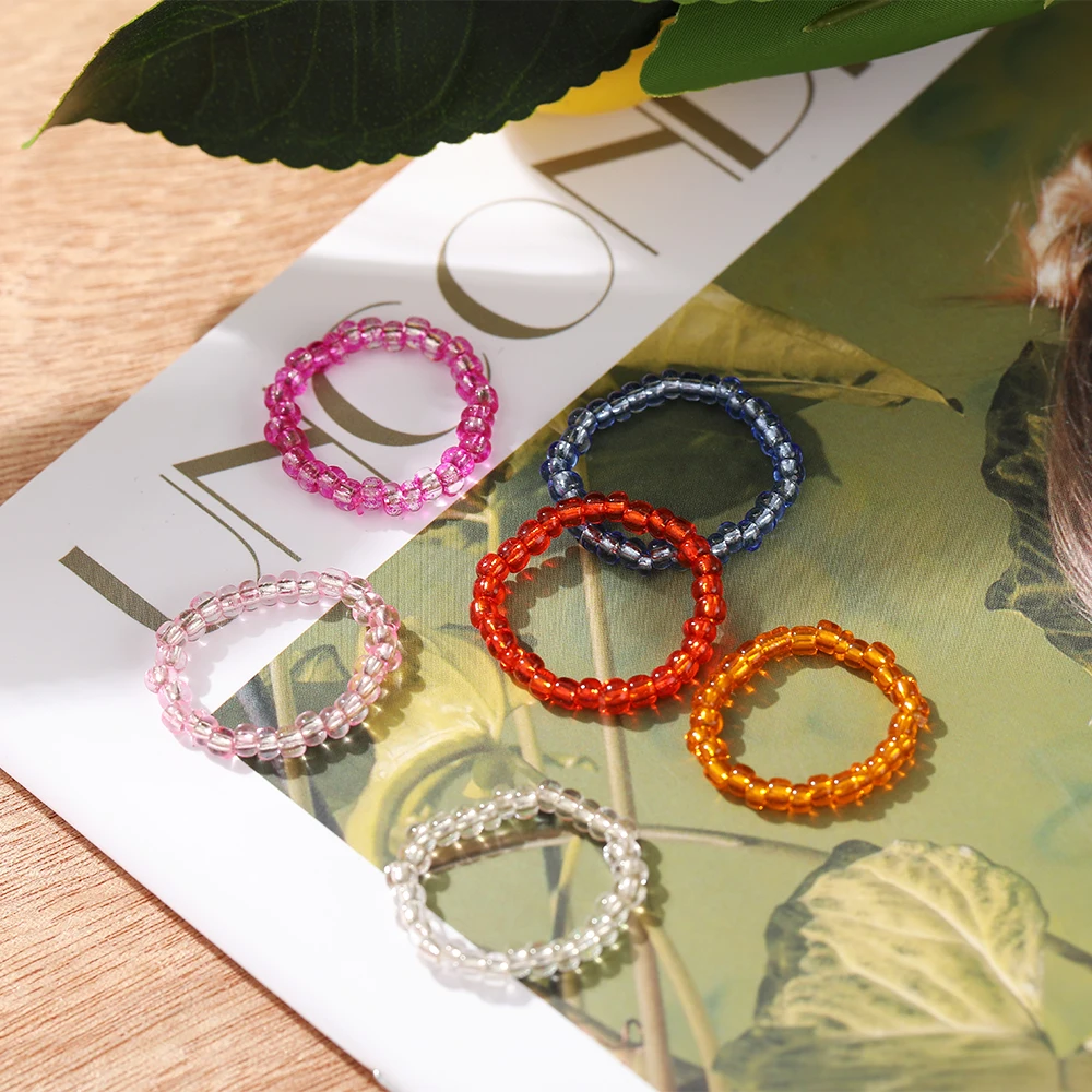 Новые милые прозрачные акриловые кольца ручной работы из бисера разразы Красочные Геометрические Квадратные круглые кольца для женщин Y2k ювелирные изделия для вечеринки