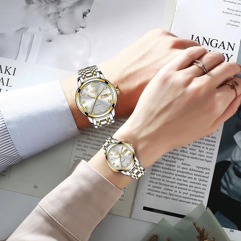 Парные часы для влюбленных, кварцевые наручные часы, модные деловые мужские часы для женщин, часы из нержавеющей стали, белые, золотые часы, пара часов