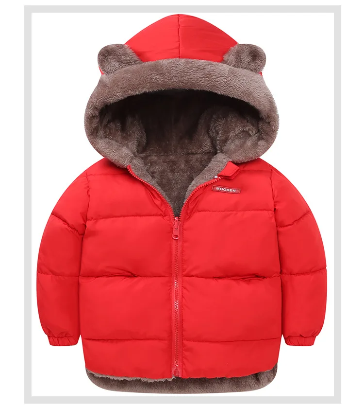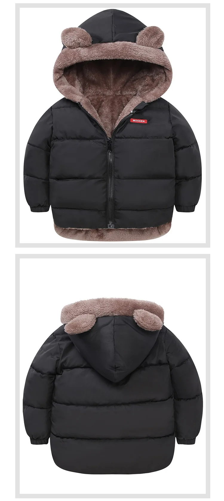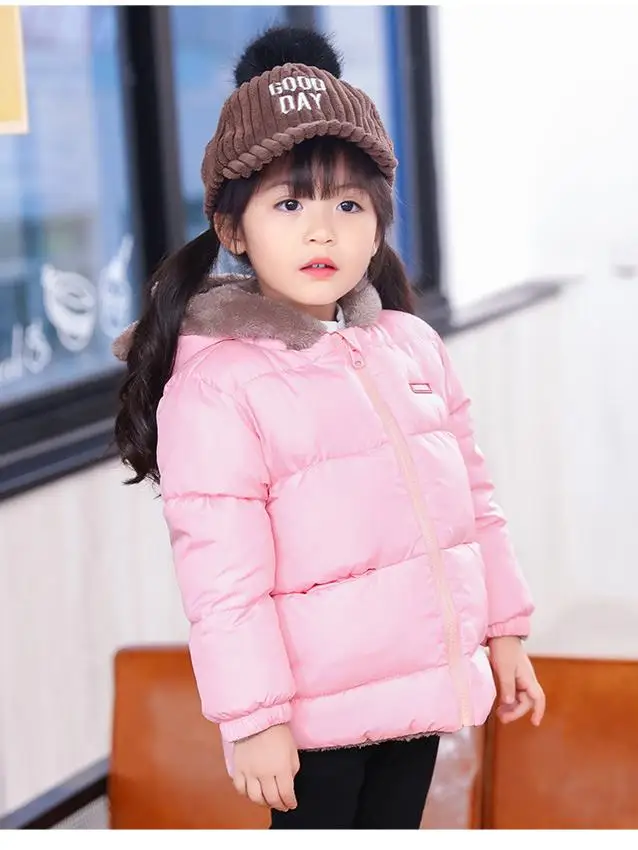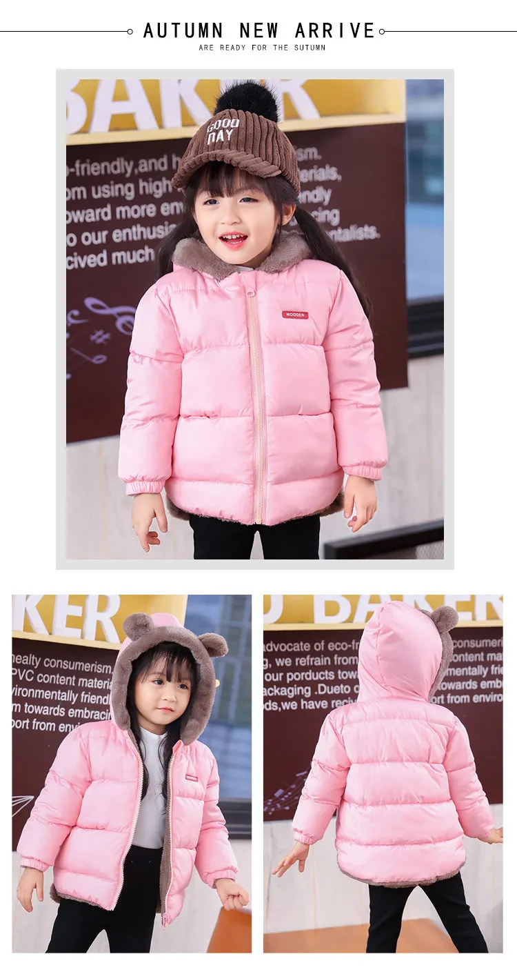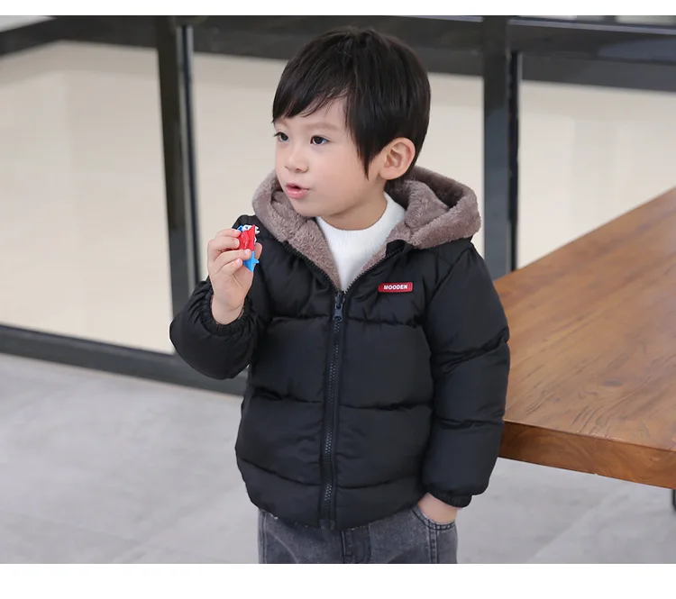 Милая детская зимняя одежда Двусторонняя одежда детская теплая утепленная куртка для мальчиков пуховая куртка с хлопковой подкладкой, бархатная Короткая Толстовка с капюшоном