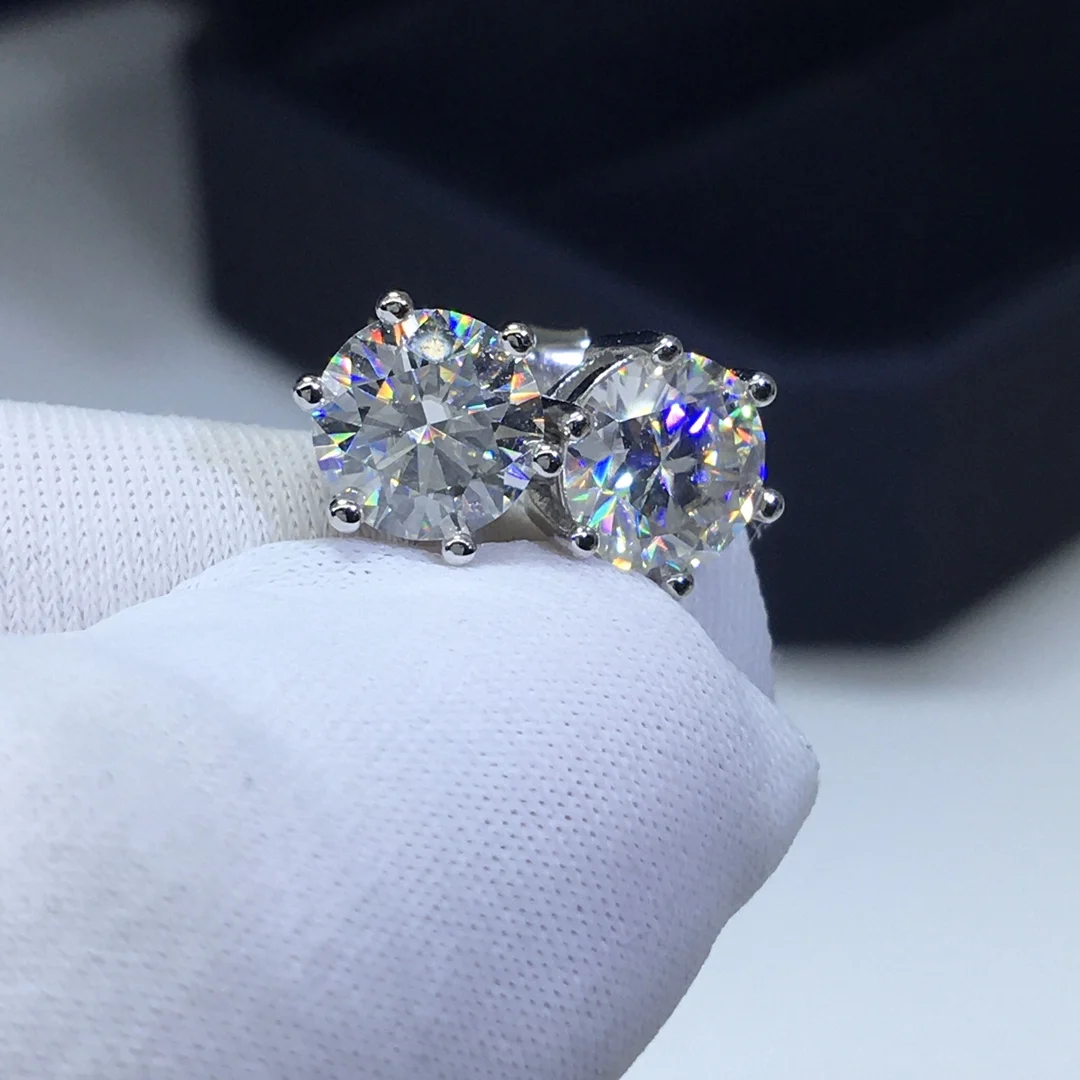 Женские серьги-гвоздики из серебра 925 пробы с муассанитом, 2 карата