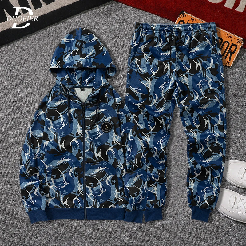 Мужской спортивный костюм с капюшоном, повседневный Камуфляжный костюм в стиле Харадзюку из двух предметов, куртка и штаны на молнии, осень 2022