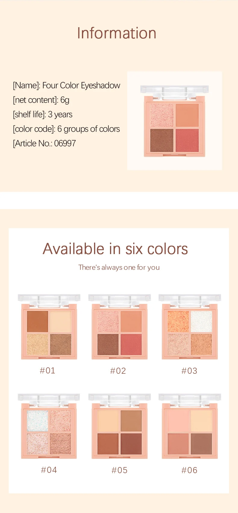 Палитра теней для век, 4 цвета, матовые тени для век, Праймер, водостойкие блестящие тени для век, блестящие тени для век, пудра, косметика