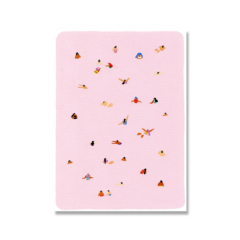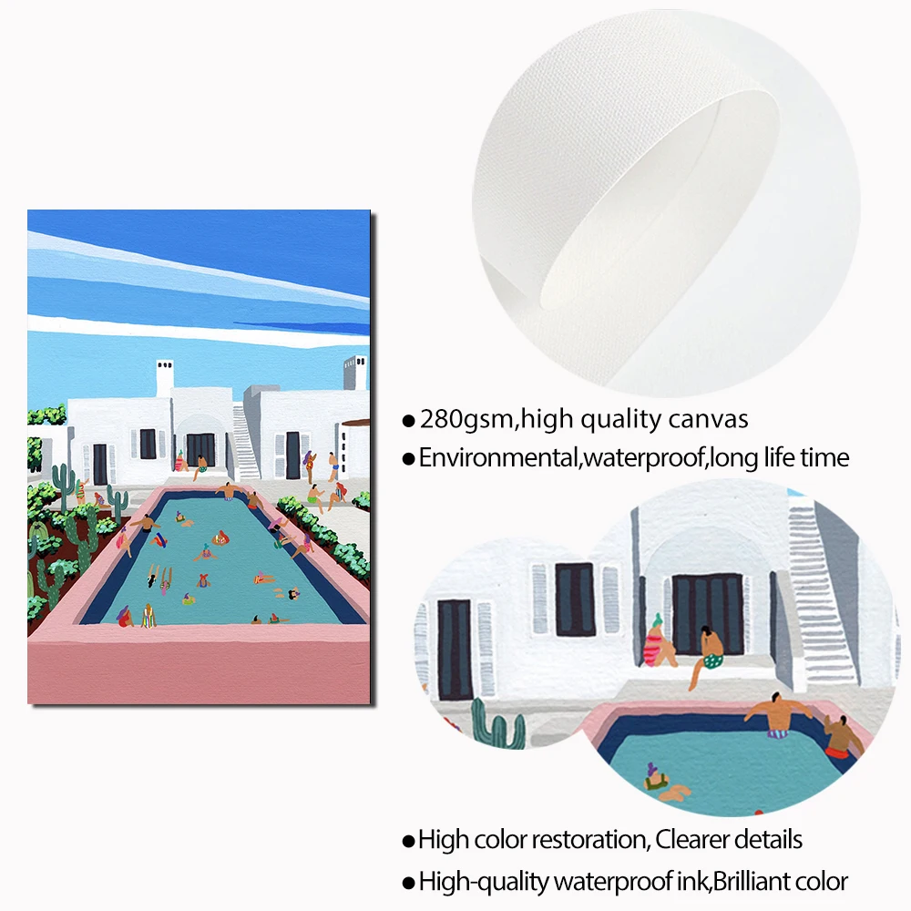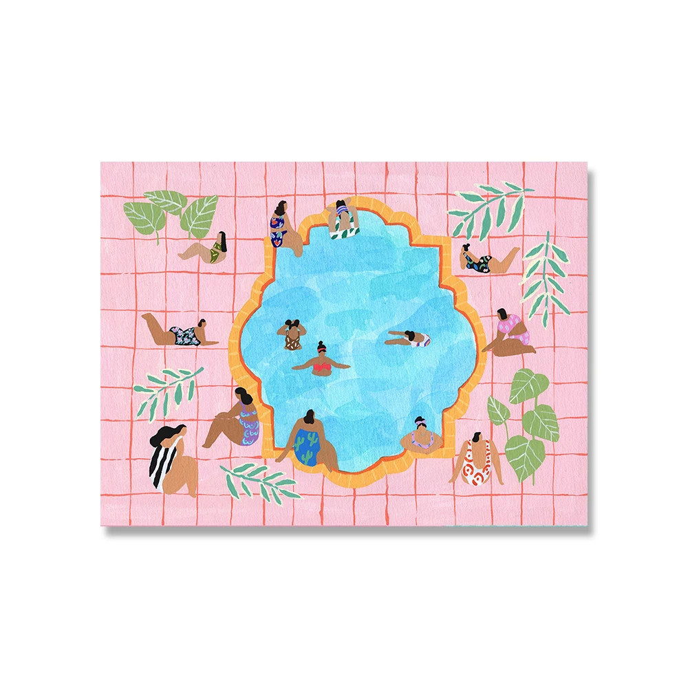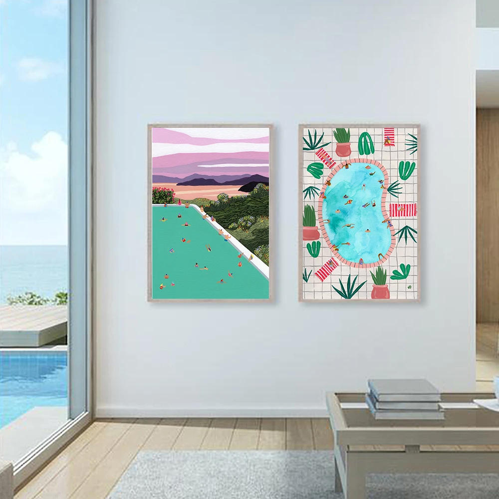 Скандинавский розовый постер для берега, летняя вечеривечерние в бассейне, Пляжное плавание, абстрактная настенная Печать на холсте, декоративные картины для гостиной