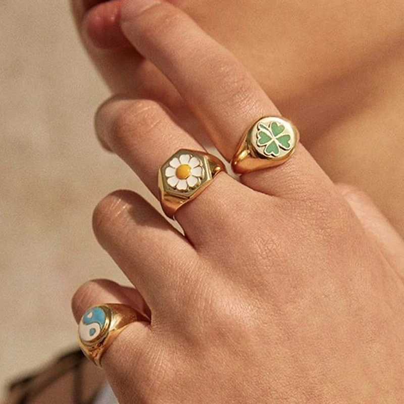 Полная гипербола, золотой полировщик Y2K, Декор, роза, Маргаритка, цветок, кольца для женщин, девушек, капельное масло, кольцо на палец, модные ювелирные изделия, новинка 2021