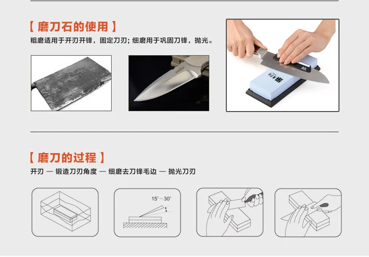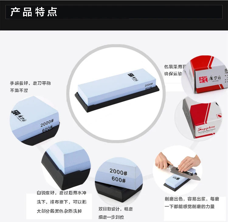1. Трехступенчатый дизайн для грубой, средней и тонкой хонинга. 2. Уникальный дизайн заточки колеса, удобно затачивать назад и вперед. 3. Нанесите ущерб классической форме и оптимизируйте дизайн, чтобы получить идеальный внешний вид.