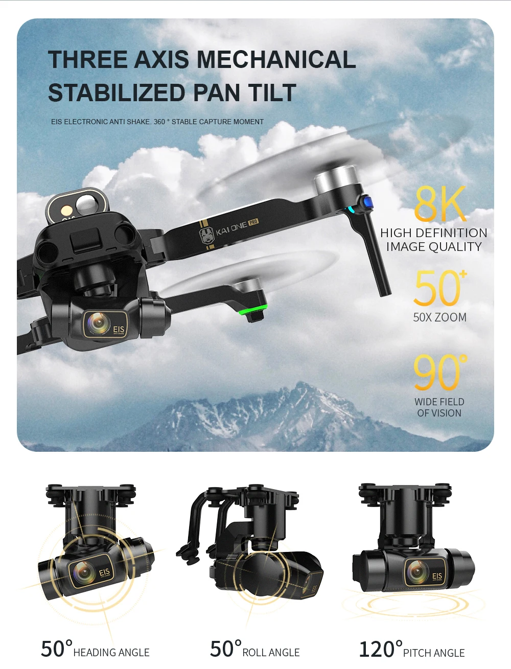 KAI ONE MAX GPS профессиональный 8K HD Двойная камера Дрон 3 оси PT...