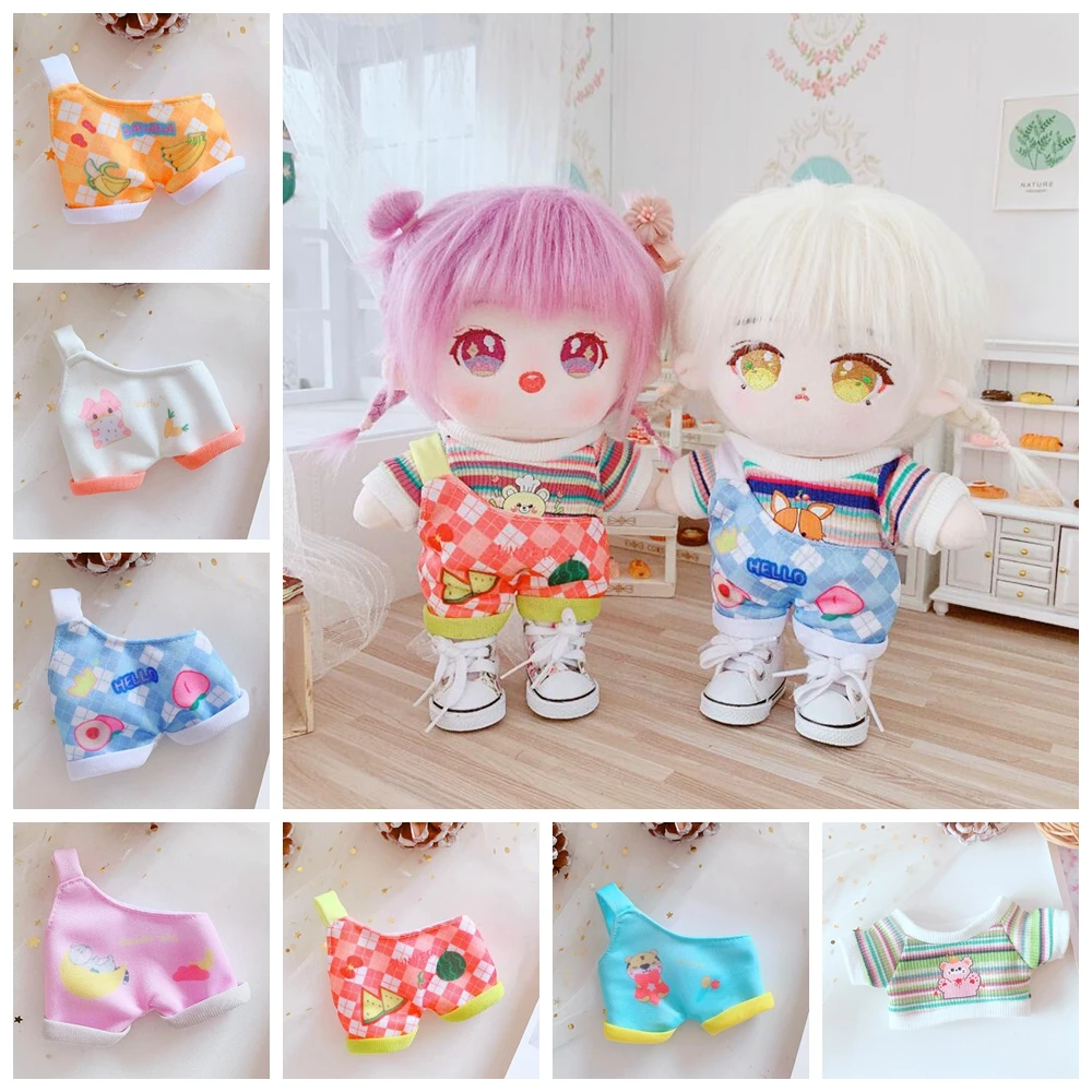 Детский Кукольный наряд 20 см, плюшевая Одежда для кукол, милая футболка, топ, комбинезон, мягкие игрушки, куклы, аксессуары для корейских кукол Kpop EXO Idol