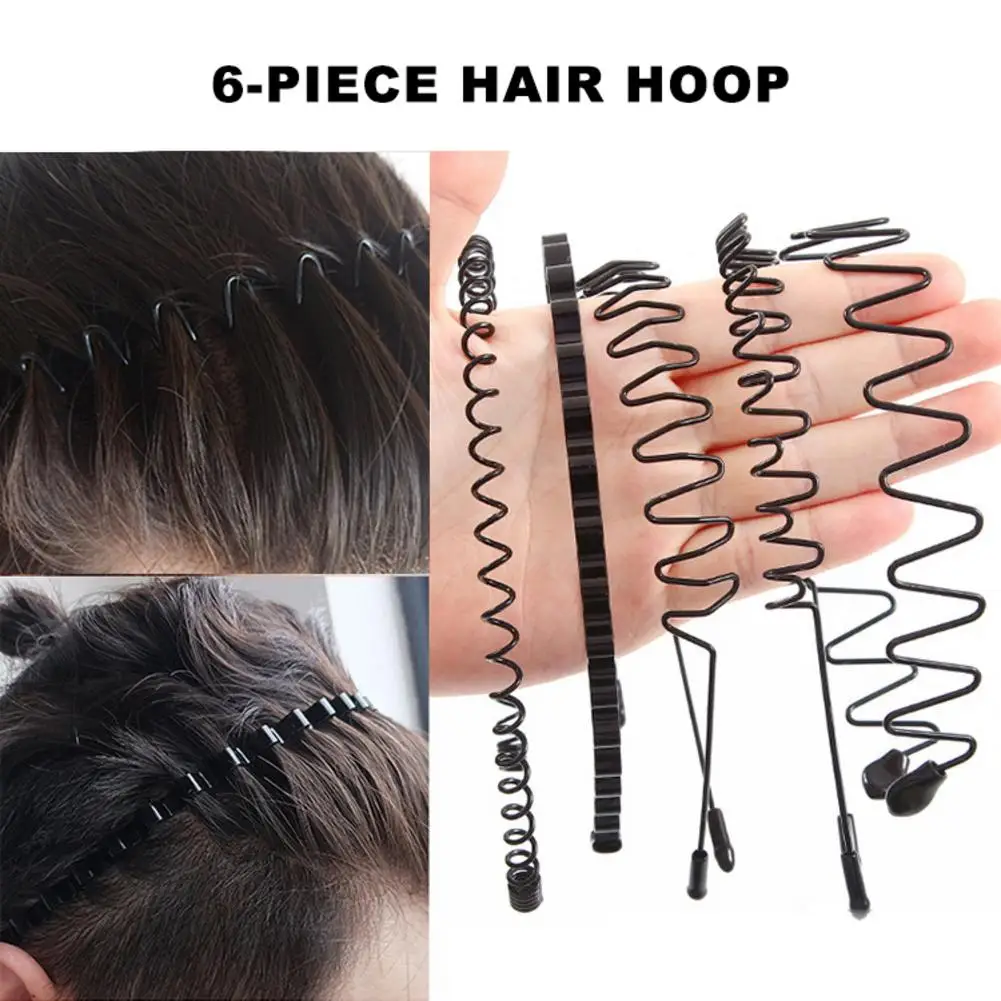 6 шт. простой черный металлический ободок унисекс, Весенняя модель, противоскользящая повязка на голову, аксессуары для волос для мужчин и женщин, ободок для лица