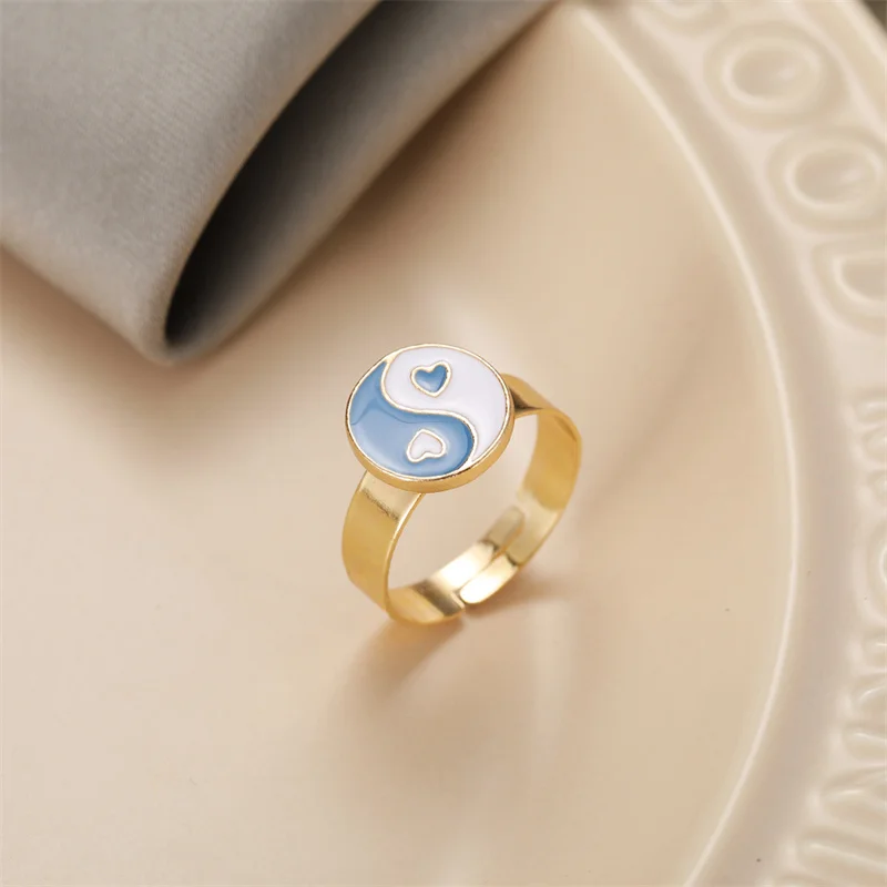 Массивное Золотое большое кольцо Ins Hyperbole Y2K, украшение в виде цветка ромашки Инь Янь, розы, маргаритки для женщин и девочек, кольцо с масляным маслом на палец, новинка, ювелирные изделия