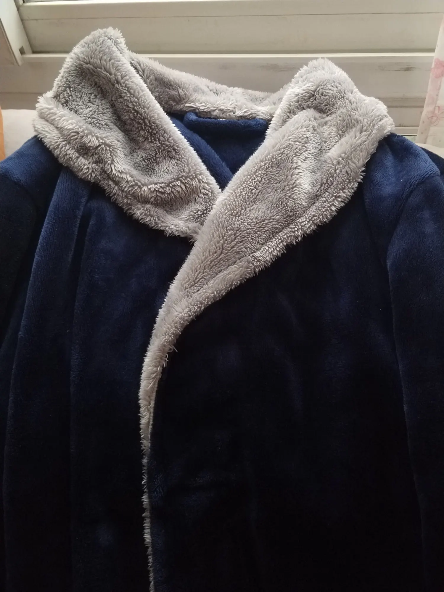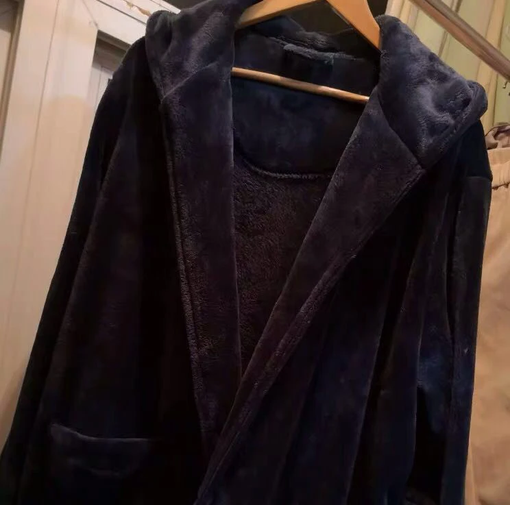 Ткань из кораллового флиса красивая, цвет темно-синий, я учитель, который любит носить ночнушку, вес 82 кг, рост: 186 см, купил размер XL просто хорошо подходит, длинный халат до лодыжки, длинный дизайн, сохраняет тепло, Время доставки занимает 11 дней, быстрая доставка, хорошо полученные банные халаты более высокого качества, чем обычные, честный продавец, хороший магазин, я рекомендую!