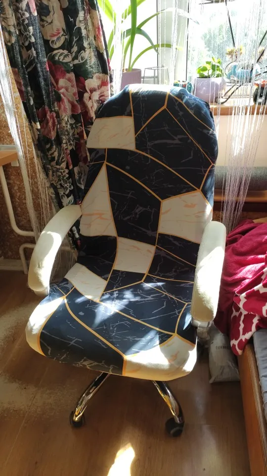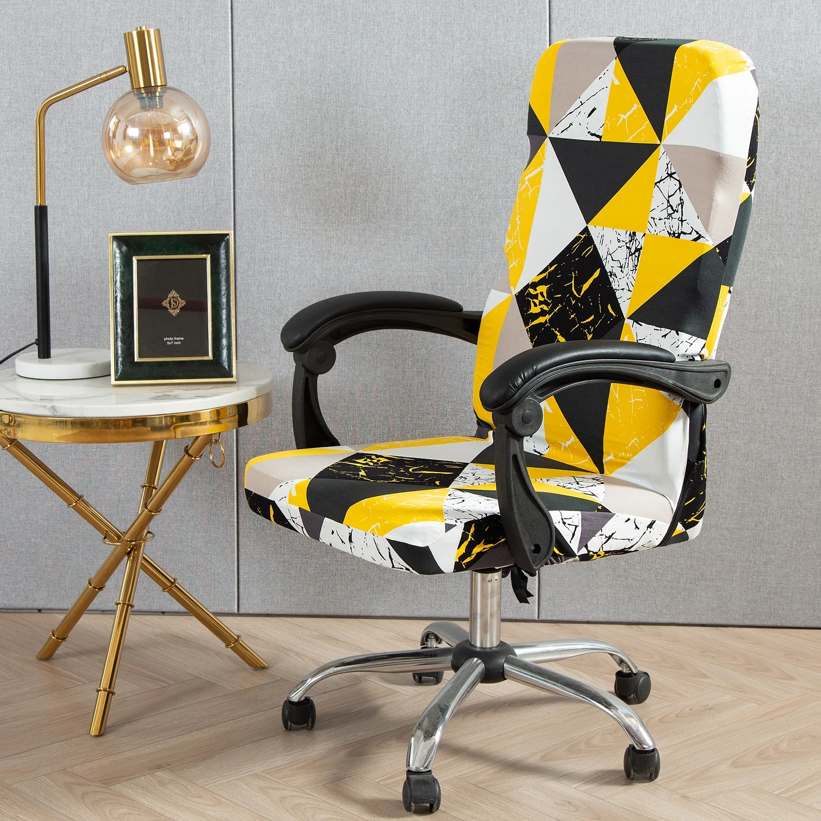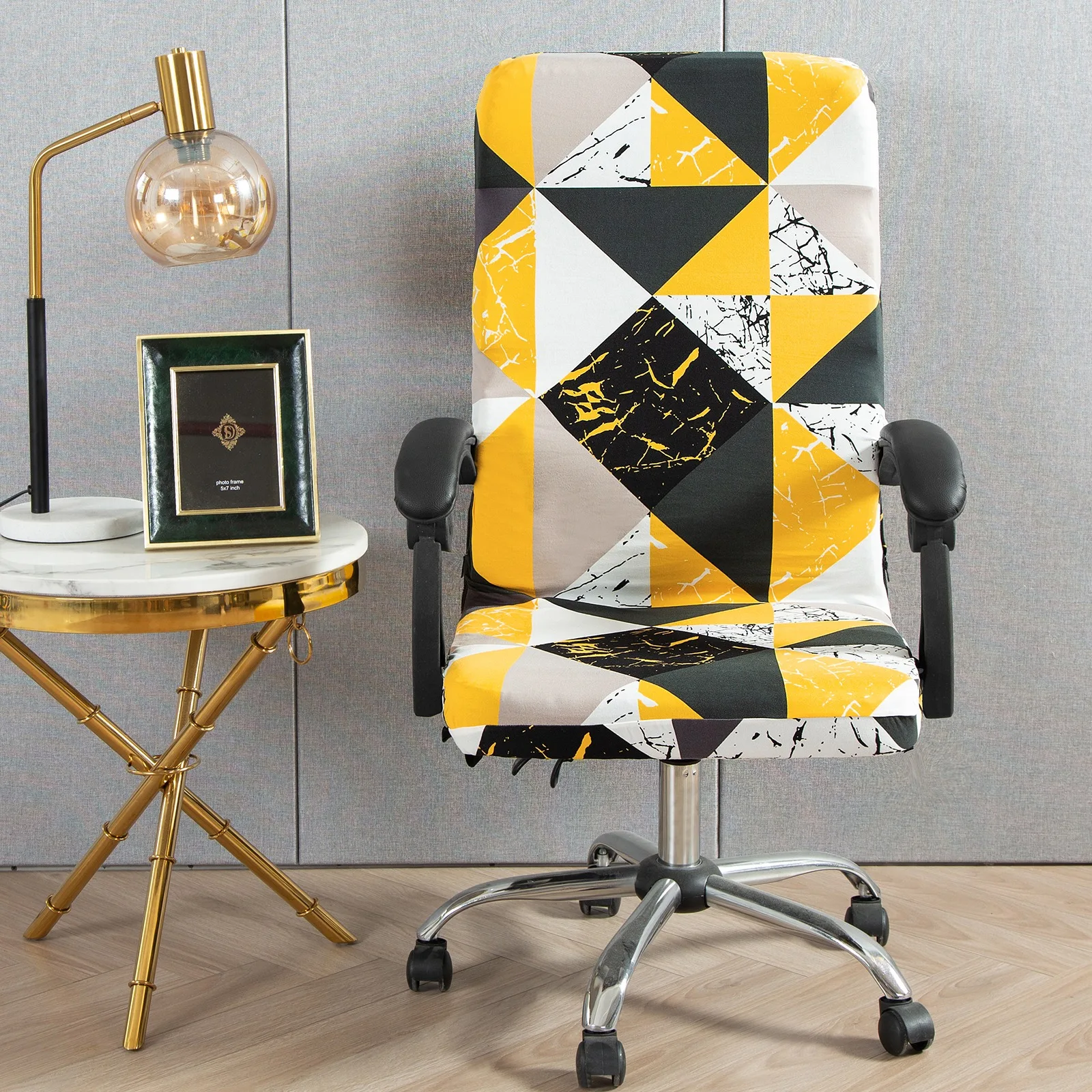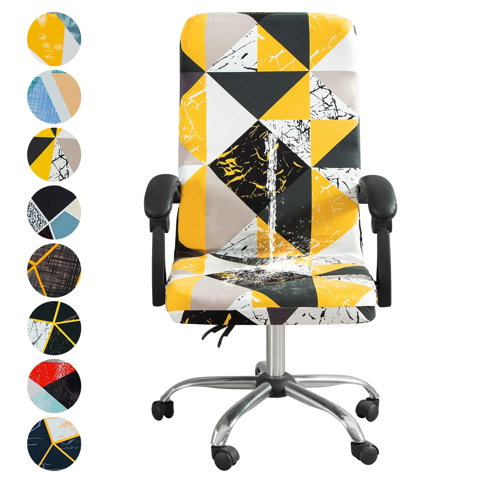 Эластичный чехол для компьютерного кресла, чехол для кресла спандекс геометрический рисунок, водонепроницаемый чехол для кресла, съемный защитный чехол для кресла