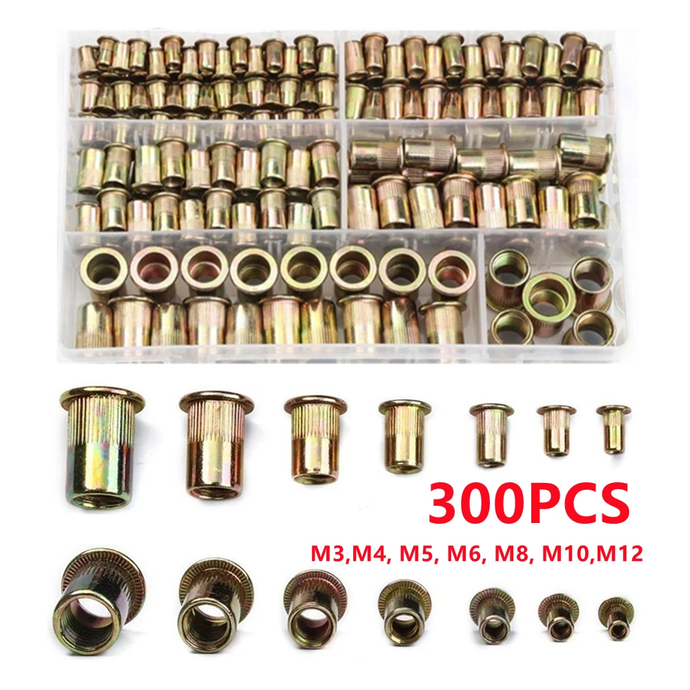 Заклепочные гайки, 300220120 шт., оцинкованные, из углеродистой стали, вставка слепой резьбой, заклепочная головка с плоской головкой, M3 M4 M5 M6 M8 M10 M12