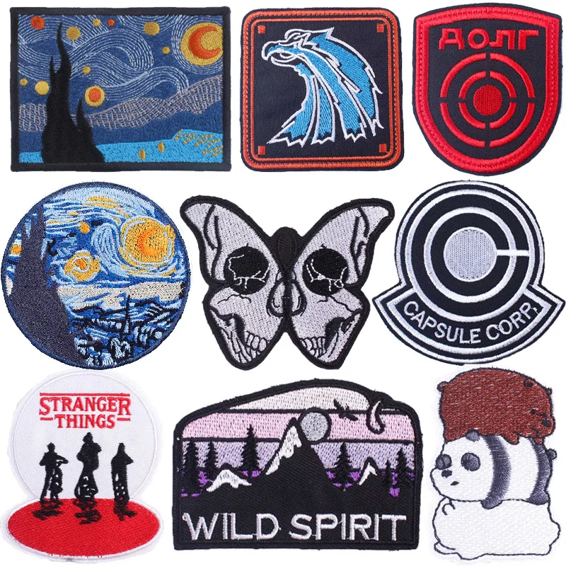Нашивки с вышивкой дикий спирт, тканевые нашивки с железными лунами, звездной ночей, в полоску с мишенями, для пальто, брюк, милая нашивка с дырками для страниц