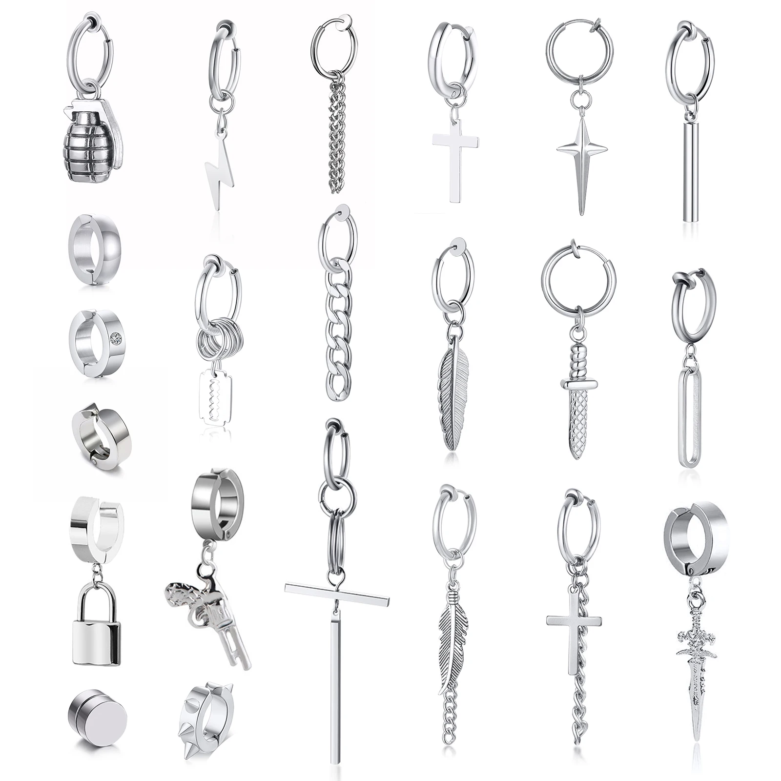 Серьги-кольца мужские с крестиком, из нержавеющей стали, в готическ...