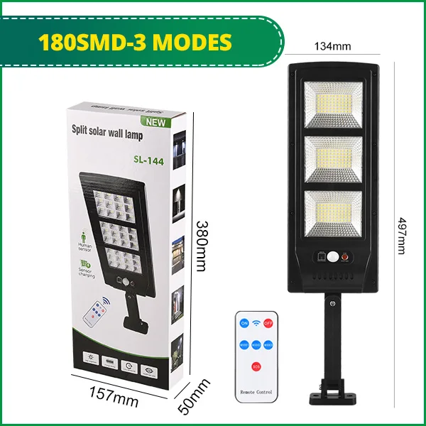 3600 мАч 180 144 светодиодный солнечный садовый светильник сенсор садовая уличная лампа IP65 водонепроницаемая настенная лампа 3 режима прожектор 2*18650