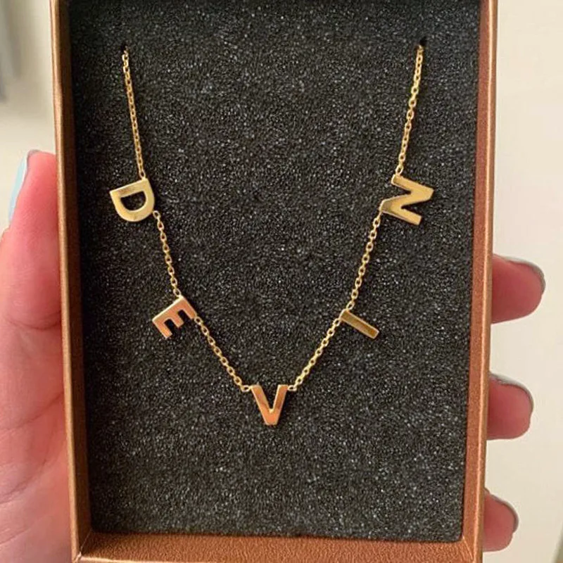 Пользовательское имя золотое украшение на шею с коробка из нержавею...