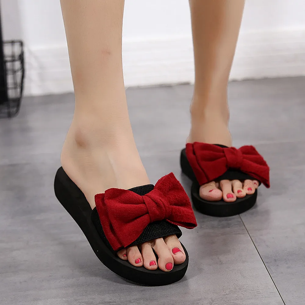 Женские летние сандалии с бантом, Тапочки, шлепанцы для дома и улицы, пляжная обувь, новые модные женские повседневные Цветочные шлепанцы, chanclas