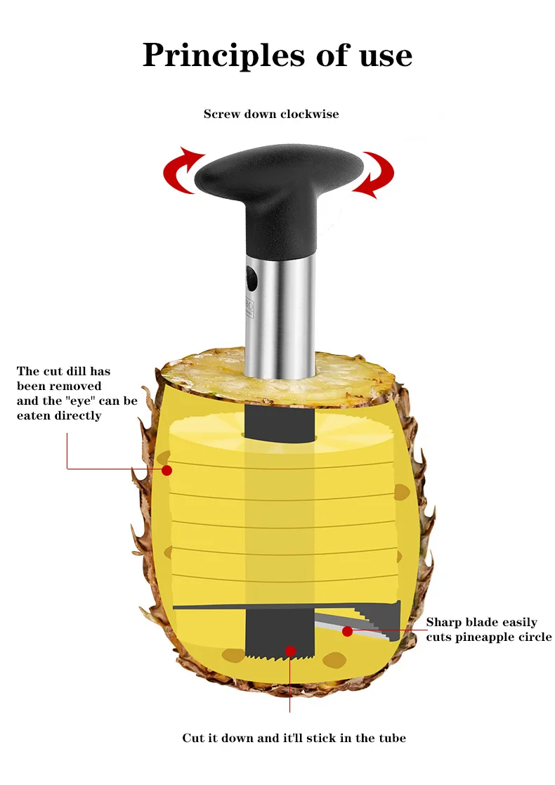 Поверните, чтобы удалить кожуруС рукояткой трещин, которая делает его ядром ананасов очень легко и быстро. Поворотная ручка имеет удобную, нескользящую рукоятку и отделяется от вала для легкой очистки.