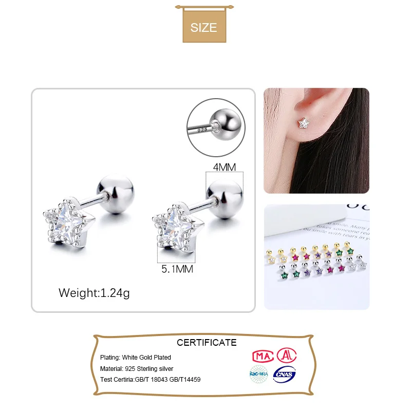 TrustDavis, серебро 925 пробы, 1 шт., циркониевая игла для ушей-зве...