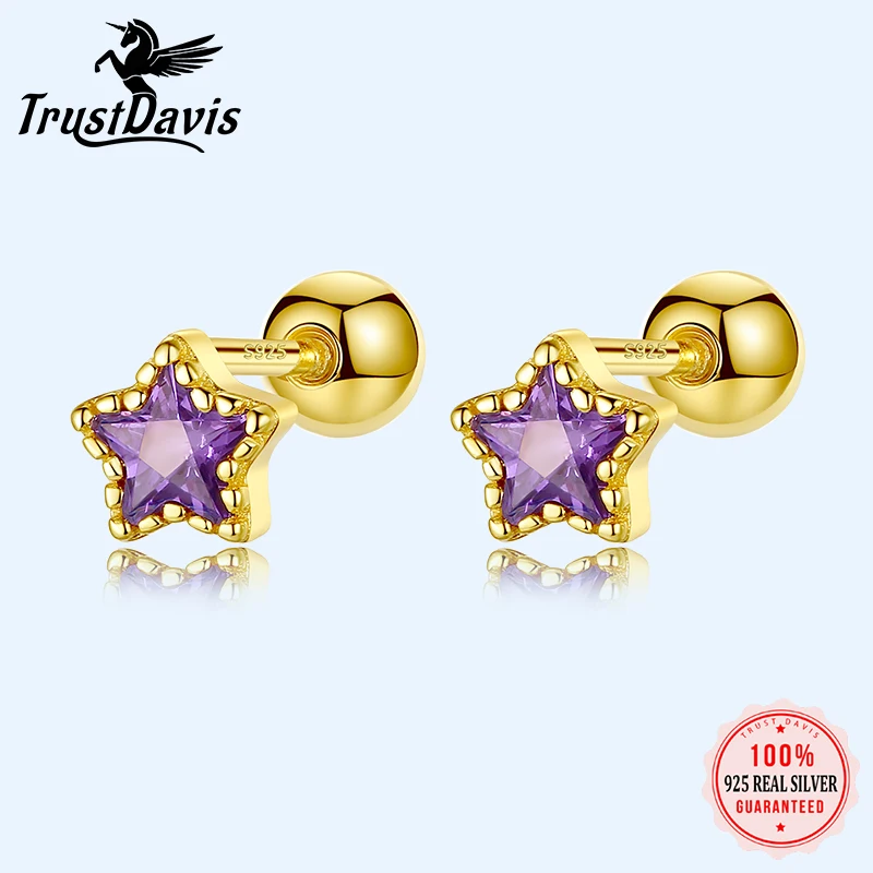 Серьги-гвоздики TrustDavis из стерлингового серебра 925 пробы с фиа...