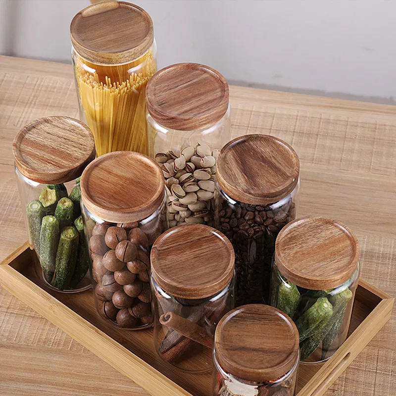 Деревянная крышка, искусственные кухонные бутылки для хранения, банка, Герметичный пищевой контейнер, чай, кофе, зерна, зерна, конфеты, банки, контейнеры
