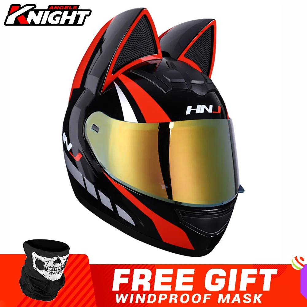 Мотоциклетный шлем HNJ, модульный всесезонный дышащий шлем для мотокросса, с кошачьими ушками