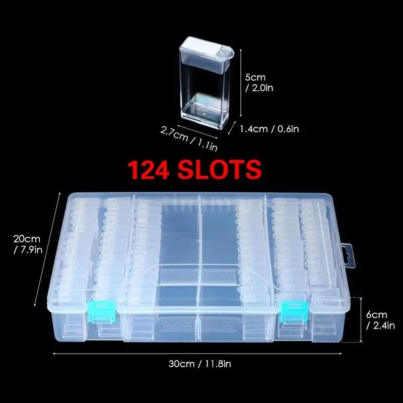 Цвет: прозрачныйМатериал: пластикБутылки: 124/84/64/42/24 шт. (по желанию)Бутылка Размеры: 5*2,6*1,2 см/2,0*1,1 * 0.47inПосылка:1 * Прозрачная Коробка для храненияОсобенности:С крышкой, Защитите мелкие детали от пыли или ржавчины, держите их в одном аккуратном и организованном месте.Легкий и компактный, практичный и удобный для переноски с ручкой.Простой, но стильный дизайн, вам точно понравится.Широко используется для хранения сережек, ожерелий, бусин, колец для пальцев или других небольших ювелирных изделий, дизайна ногтей, макияжа, таблеток и т. д.