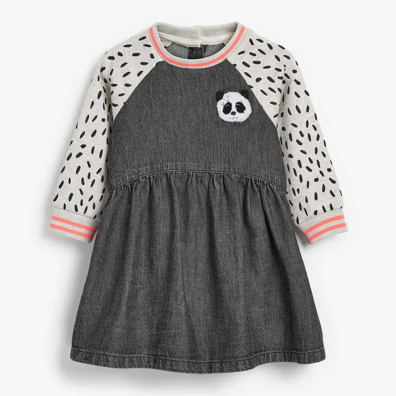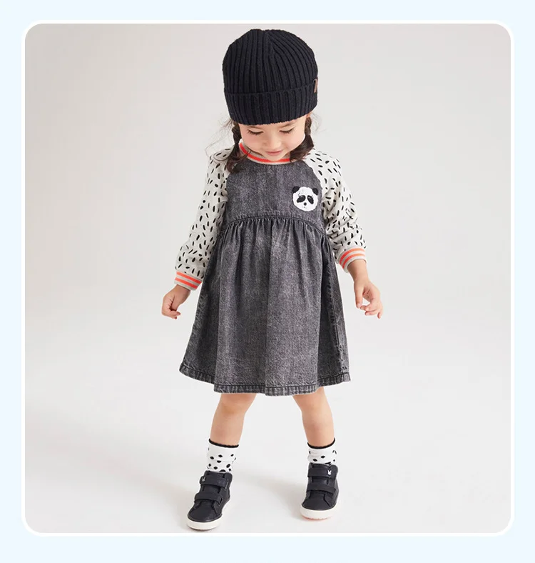 Осень 2021, джинсовые платья для маленьких девочек, детская хлопковая одежда, платья панды, платье контрастных цветов для маленьких девочек, эксклюзивные наряды