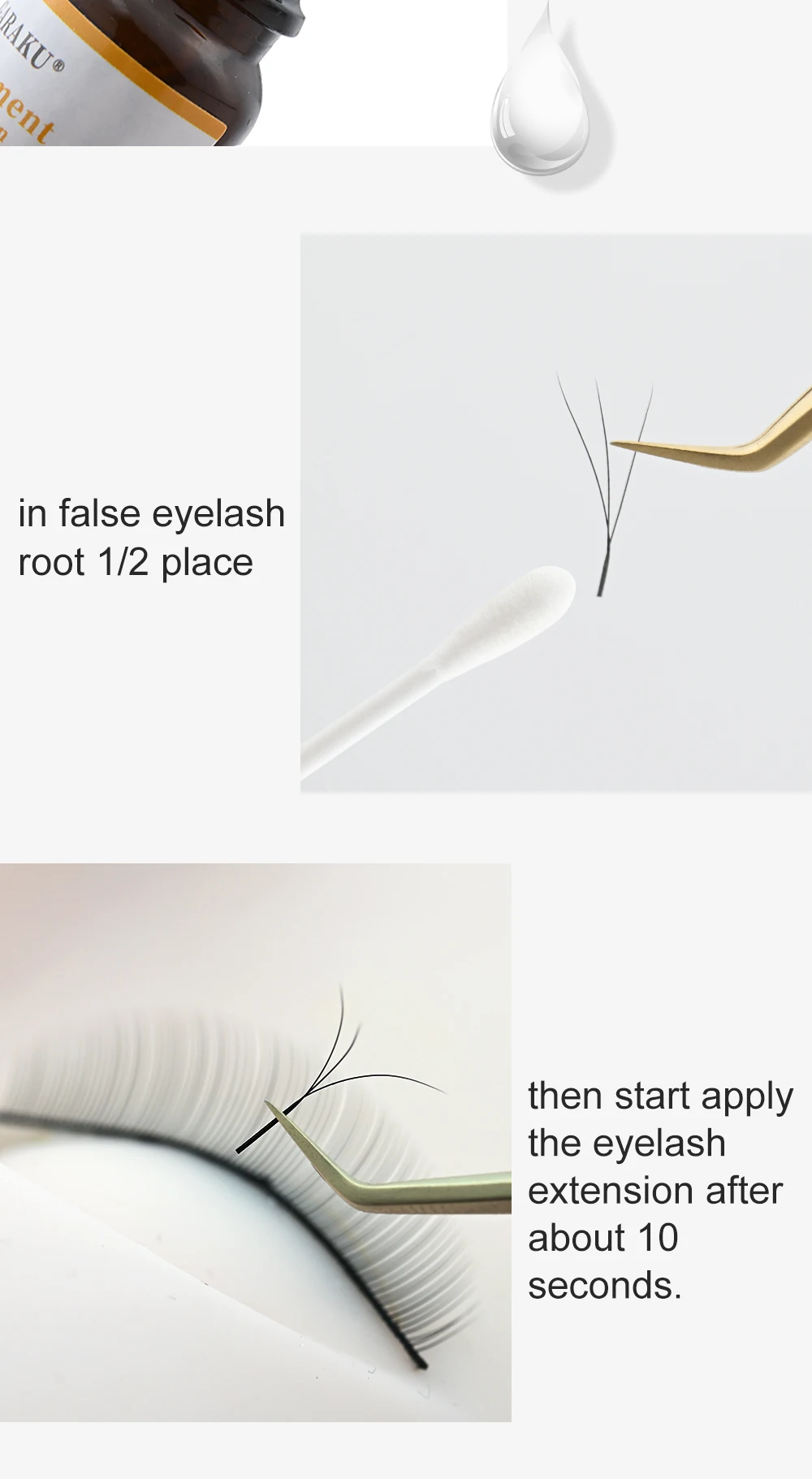 Окуните необходимое количество грунтовки ватным тампоном в корень накладных ресниц 1/2, затем начните накладывать ресницы примерно через 10 секунд.