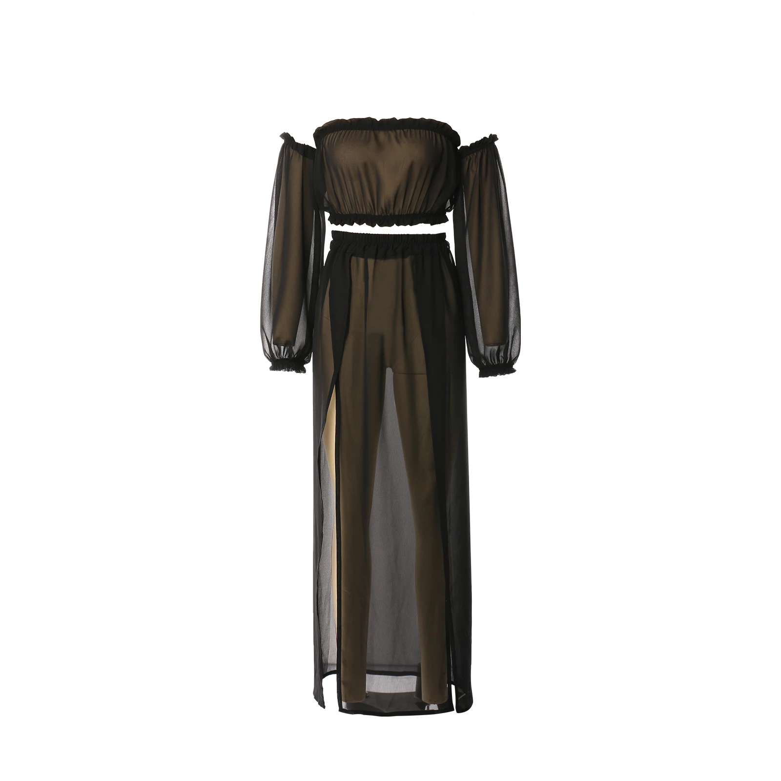 Комплект женский из двух предметов, Прозрачный Топ с длинным рукаво...