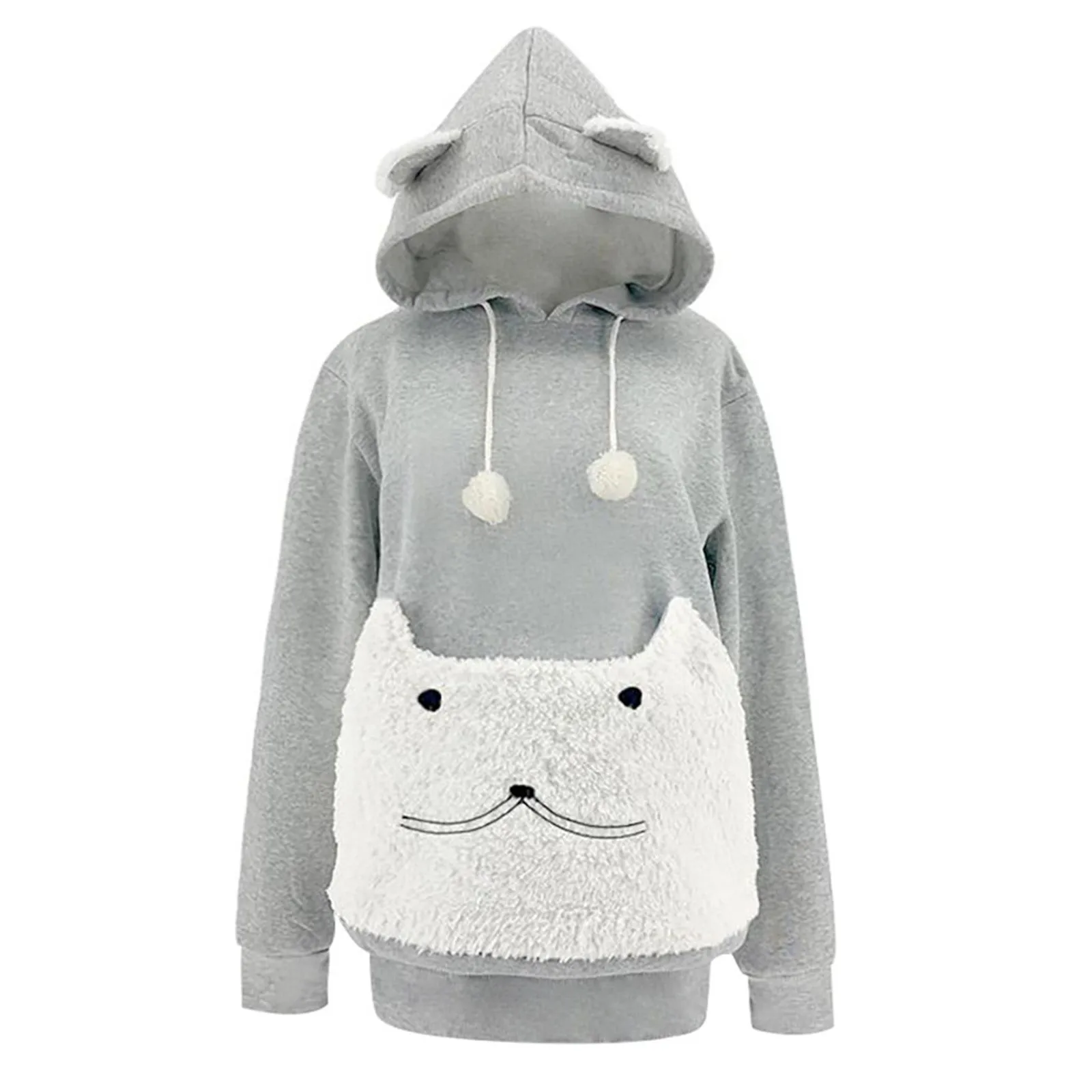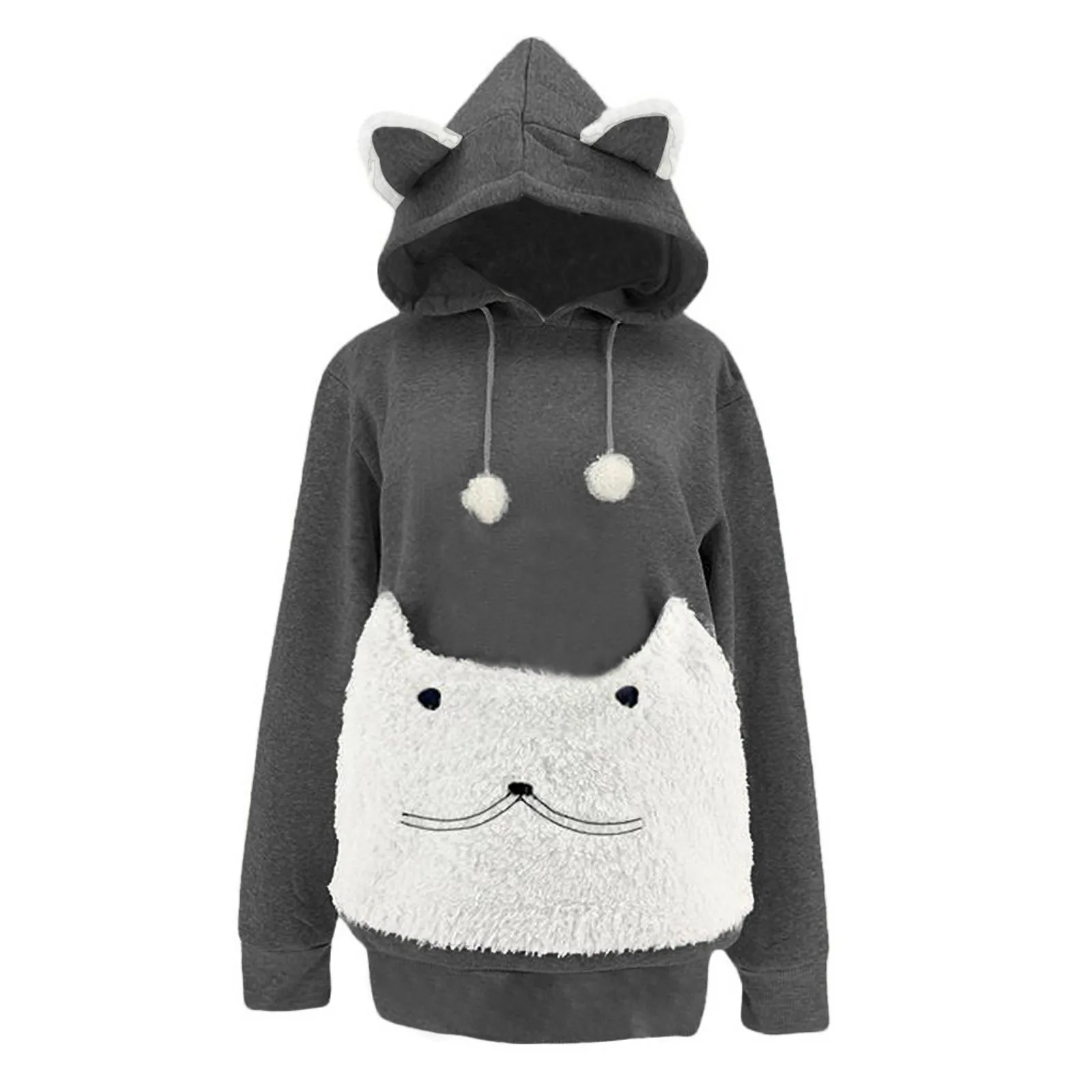 Женская толстовка с капюшоном, свитшоты с кошачьими ушками, топ с карманами, осенне-зимние свободные повседневные женские топы, новые модные милые кошачьи толстовки