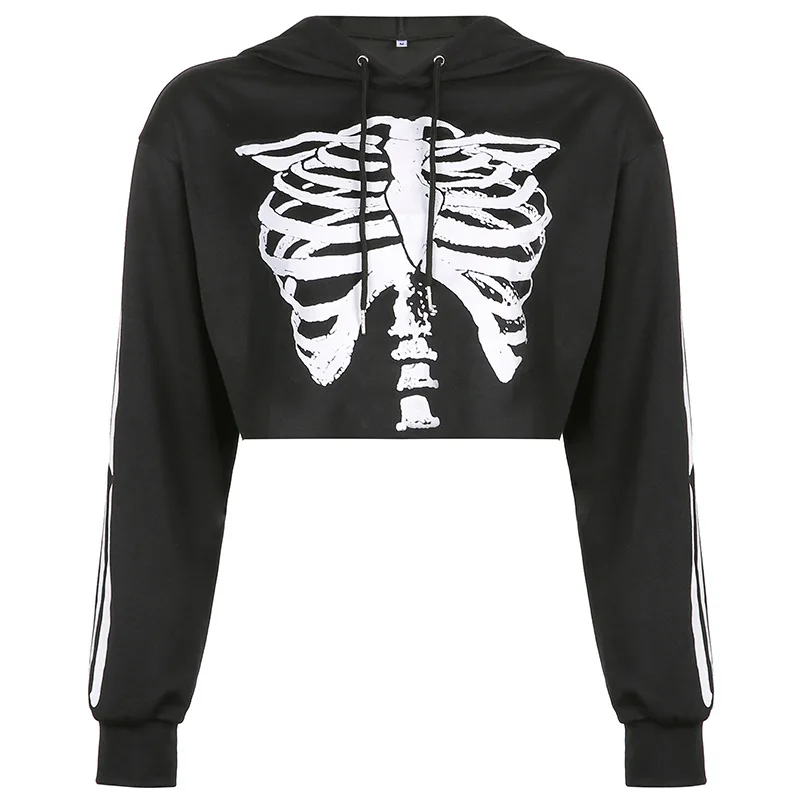 Худи InsGoth Mall в готическом стиле с принтом черепа, уличная одежда в стиле Харадзюку, черные укороченные топы, пуловер в стиле панк на осень, худи с длинным рукавом
