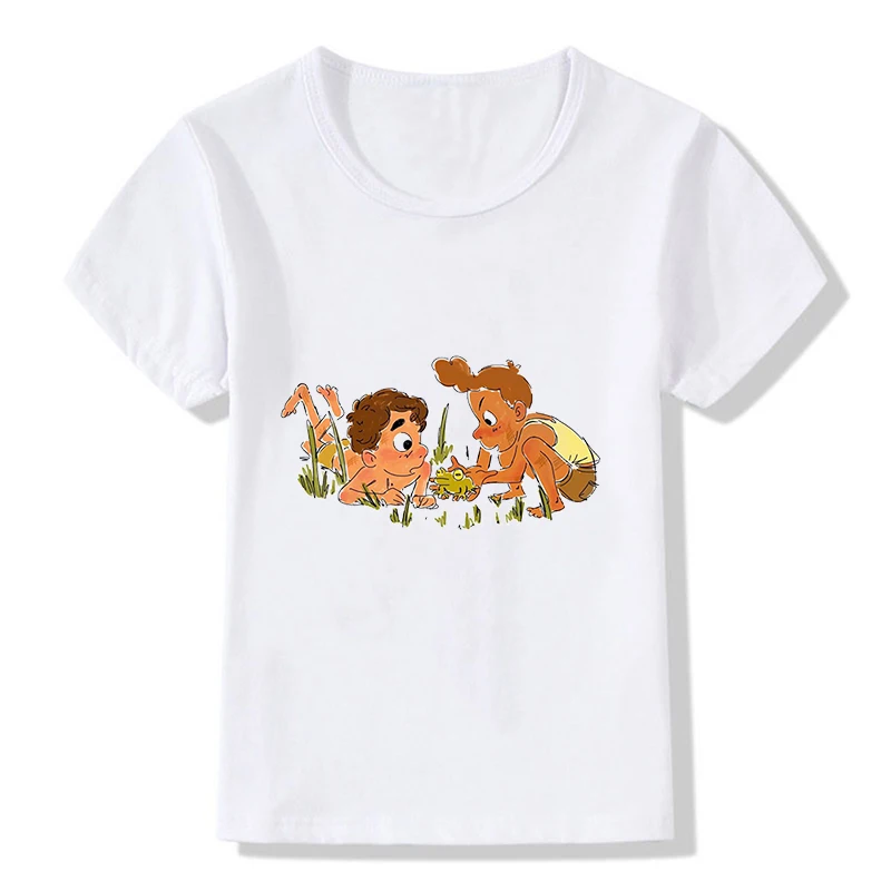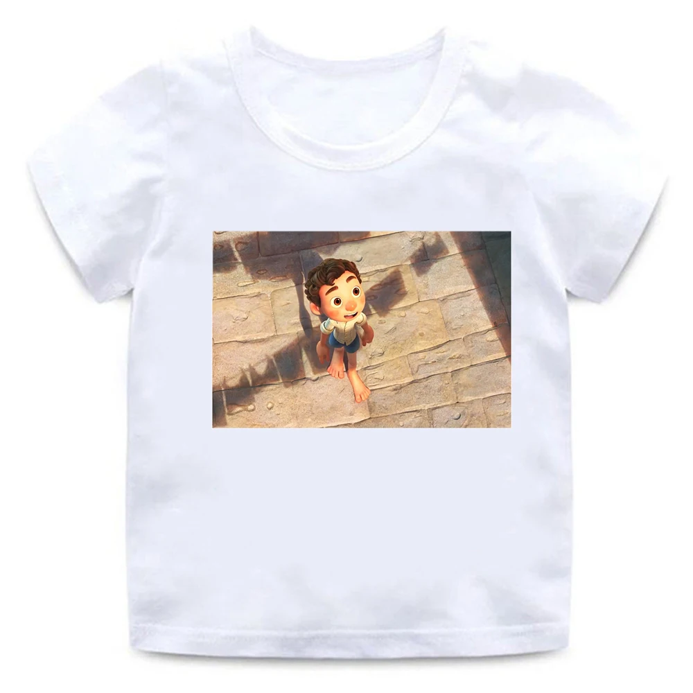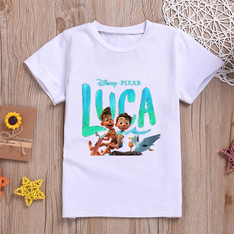 Новинка 2021, футболка с мультяшным принтом Луки, детская одежда с принтом Диснея, топы с круглым вырезом и коротким рукавом, милая модная повседневная футболка для девочек и мальчиков
