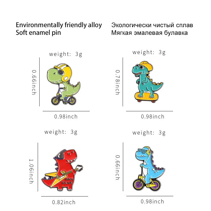 Эмалированная булавка динозавра, Значки для велосипеда, скейтборда,...