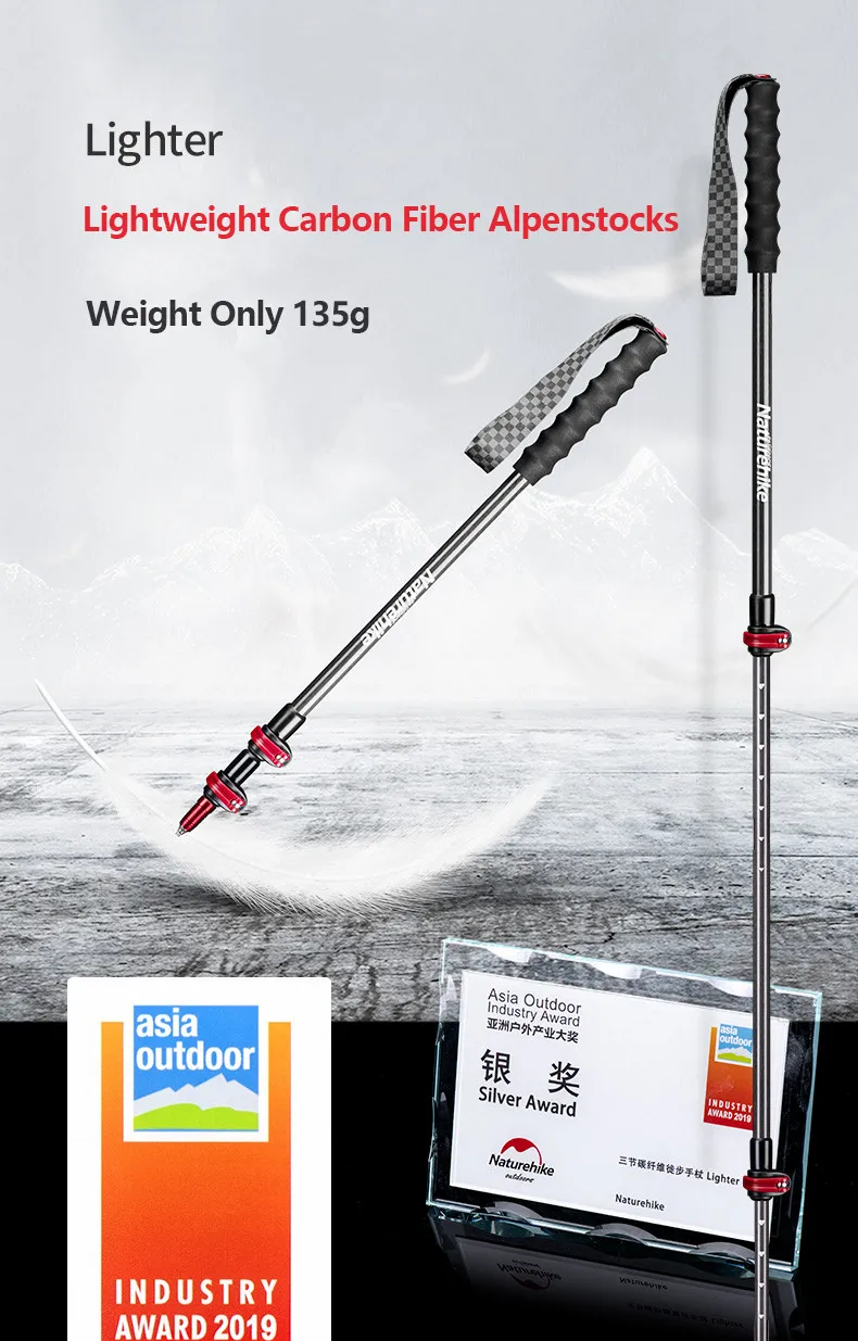 Палка Naturehike туристическая Ультралегкая, 135 г, из углеродного волокна, регулируемая, 3 секции