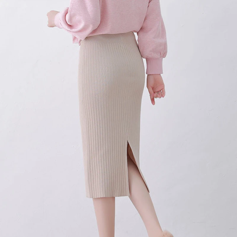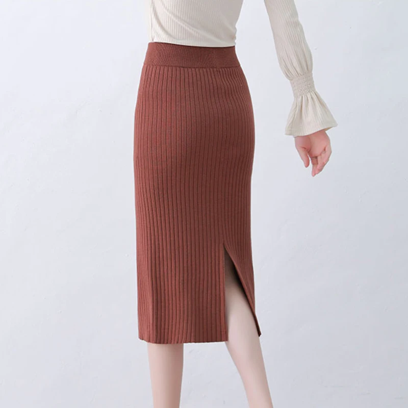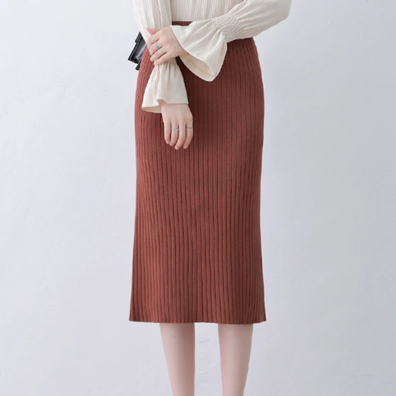 Для женщин осенняя вязанная длинная юбка, сексуальная юбка с завыше...
