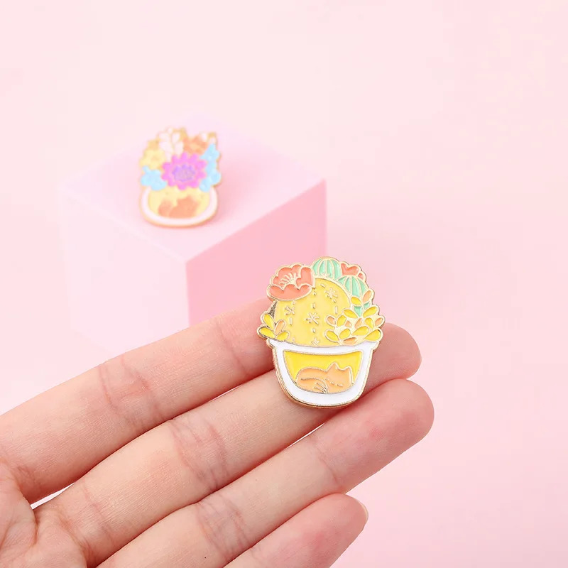 Эмалированные Броши с мультяшными милыми животными кошками, цветные Броши с растениями, цветами, растениями в горшке, Значки из сплава, Женские Ювелирные изделия, подарки для друзей