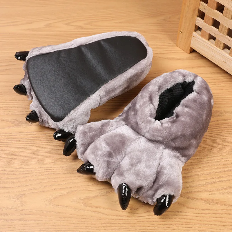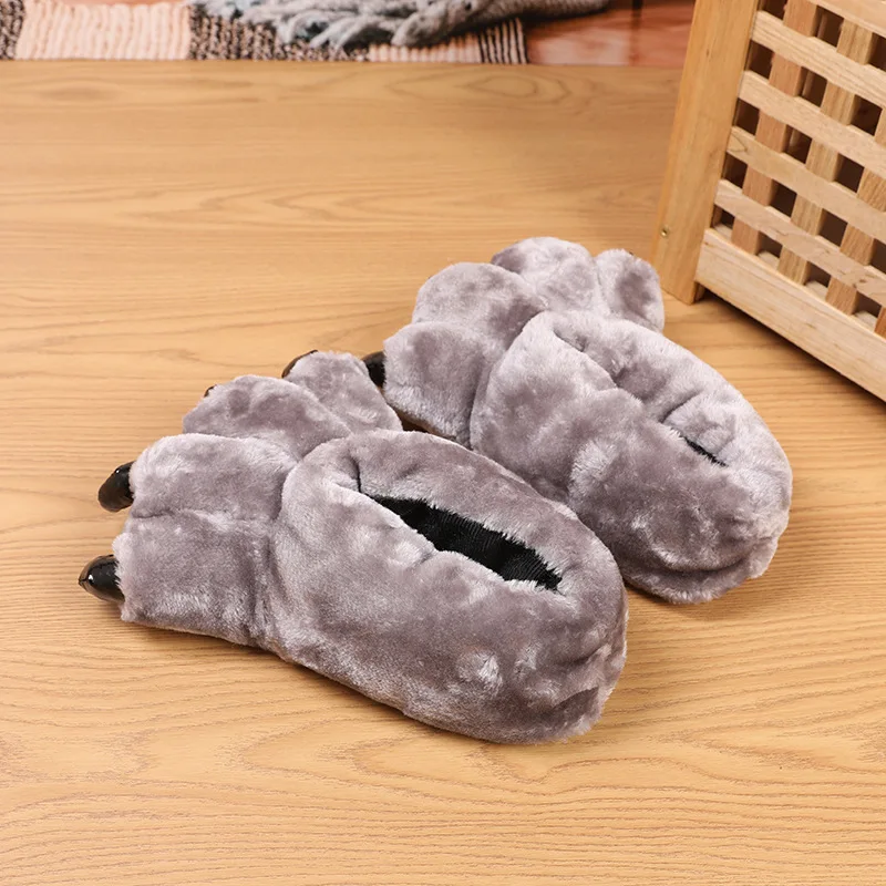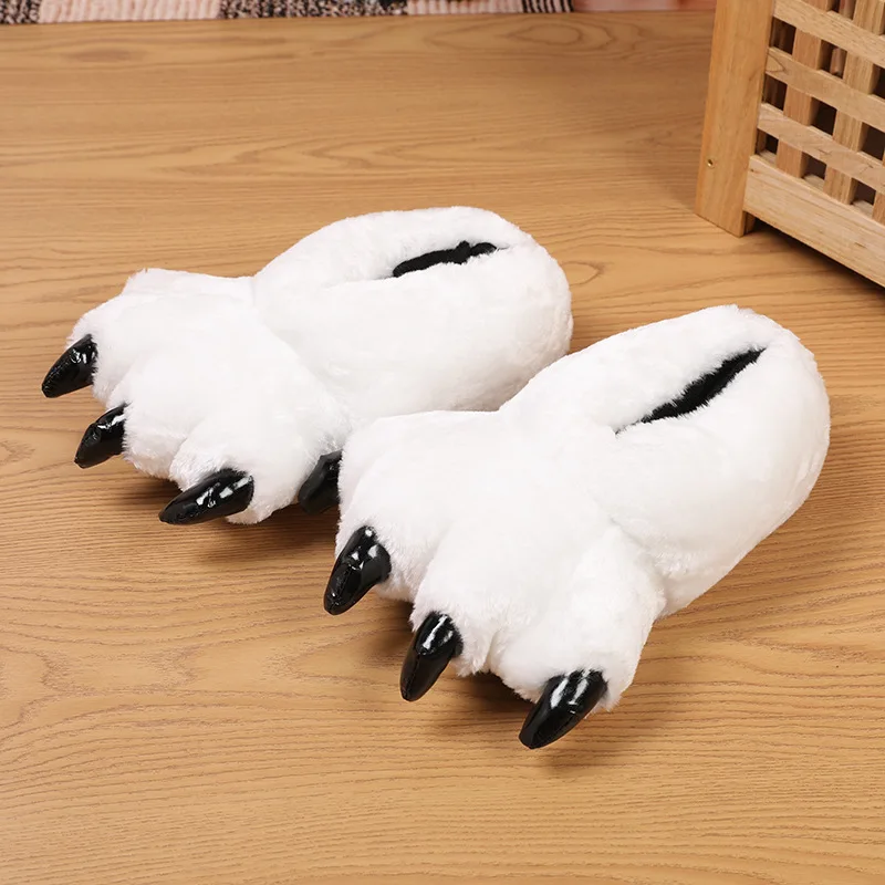 Зимние теплые мягкие домашние тапочки, 28 см, женские плюшевые домашние тапочки с забавными лапами и животными, подарок на Рождество, большие размеры 38-43