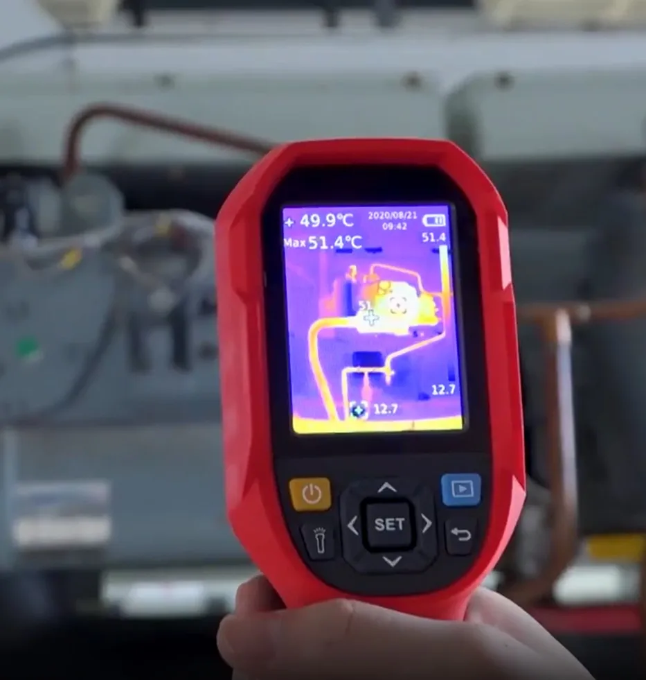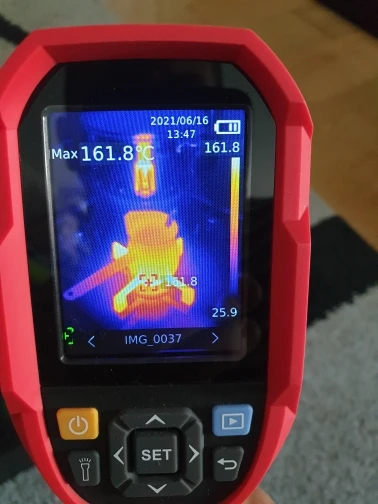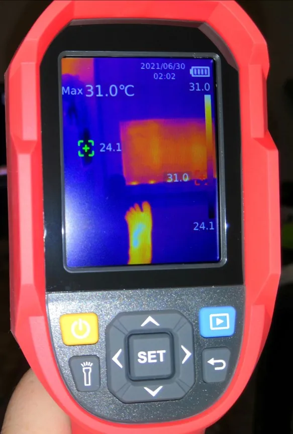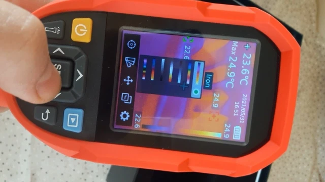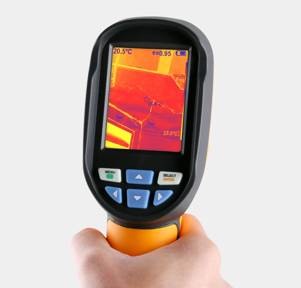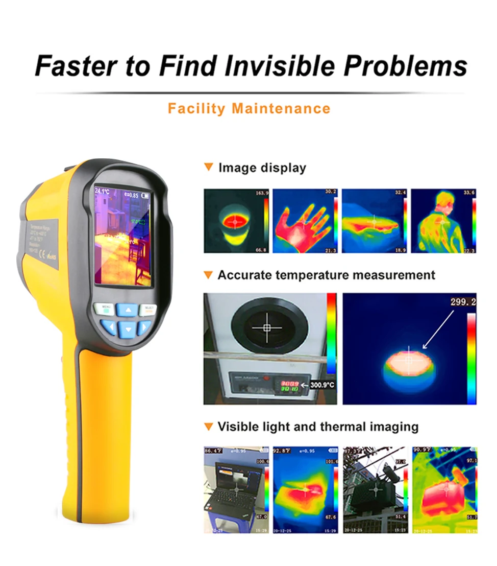 Хороший инструмент для проверки источников тепла, изображение на экране четкое с первого взгляда. Также можно хранить фотографии и т. Д. Точность: необходимо выполнить предварительные настройки для различных материалов, чтобы точно отразить температуру поверхности.