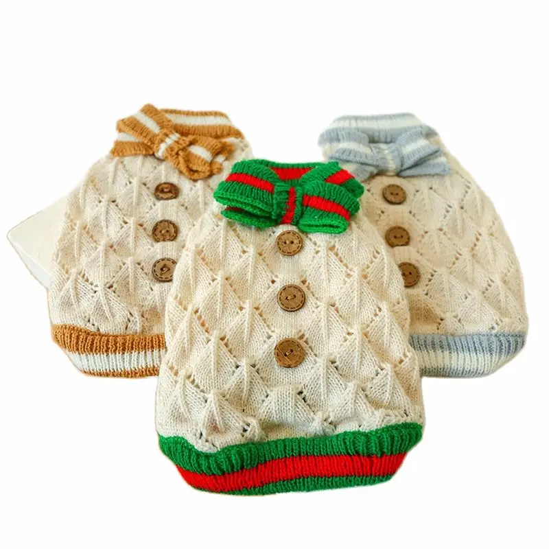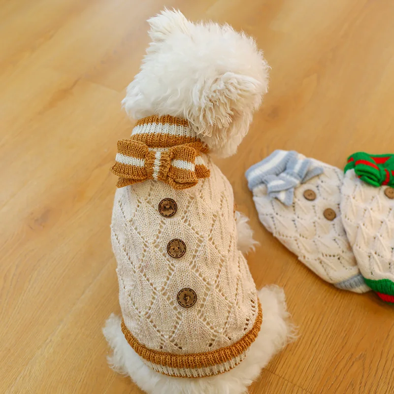 2021 одежда для домашних животных, свитер для щенков и кошек, пальто, мягкий джемпер с бантом и пуговицами для собак