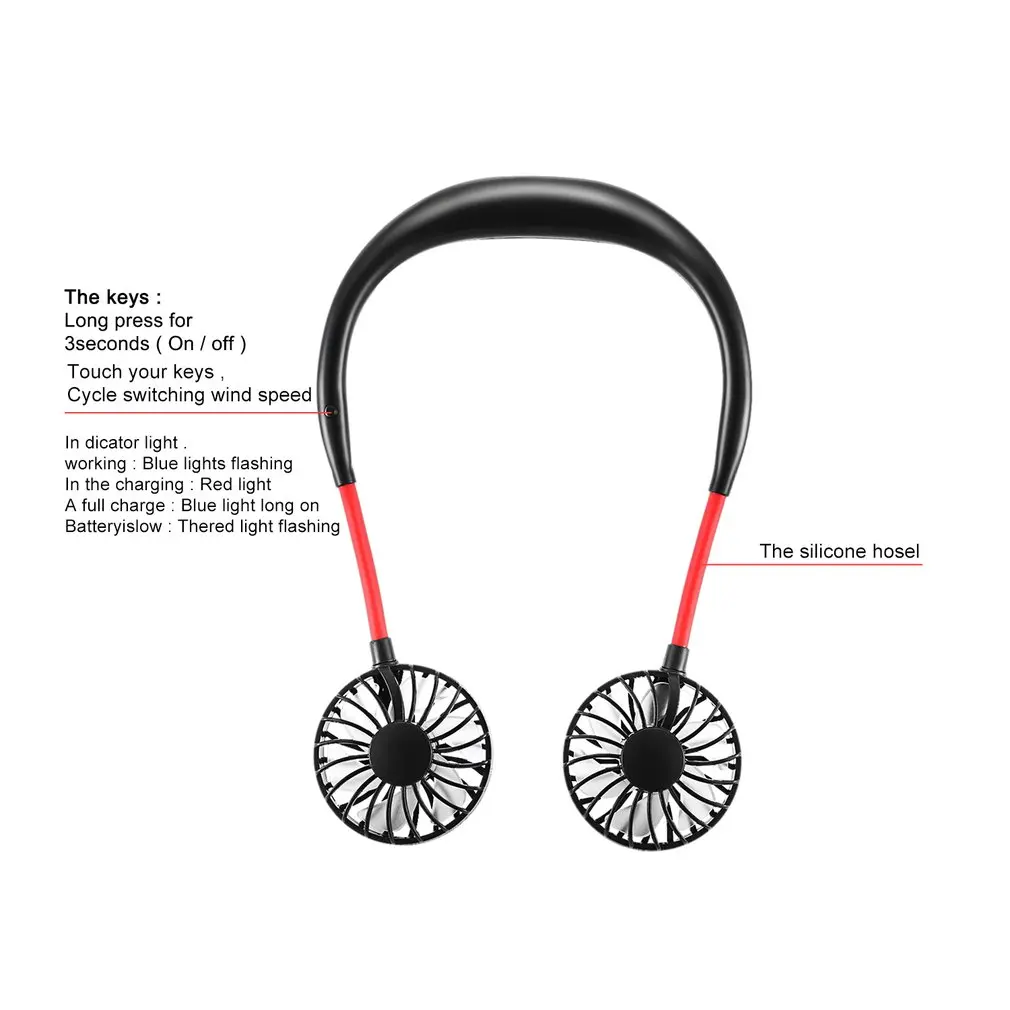 Портативный вентилятор на шею, 2 шт., с USB-зарядкой