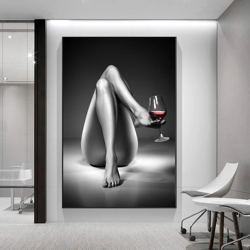 Черно-белая сексуальная девушка холст картина Обнаженная женщина вино бокалы плакаты печать на стене современные картины для гостиной домашний декор