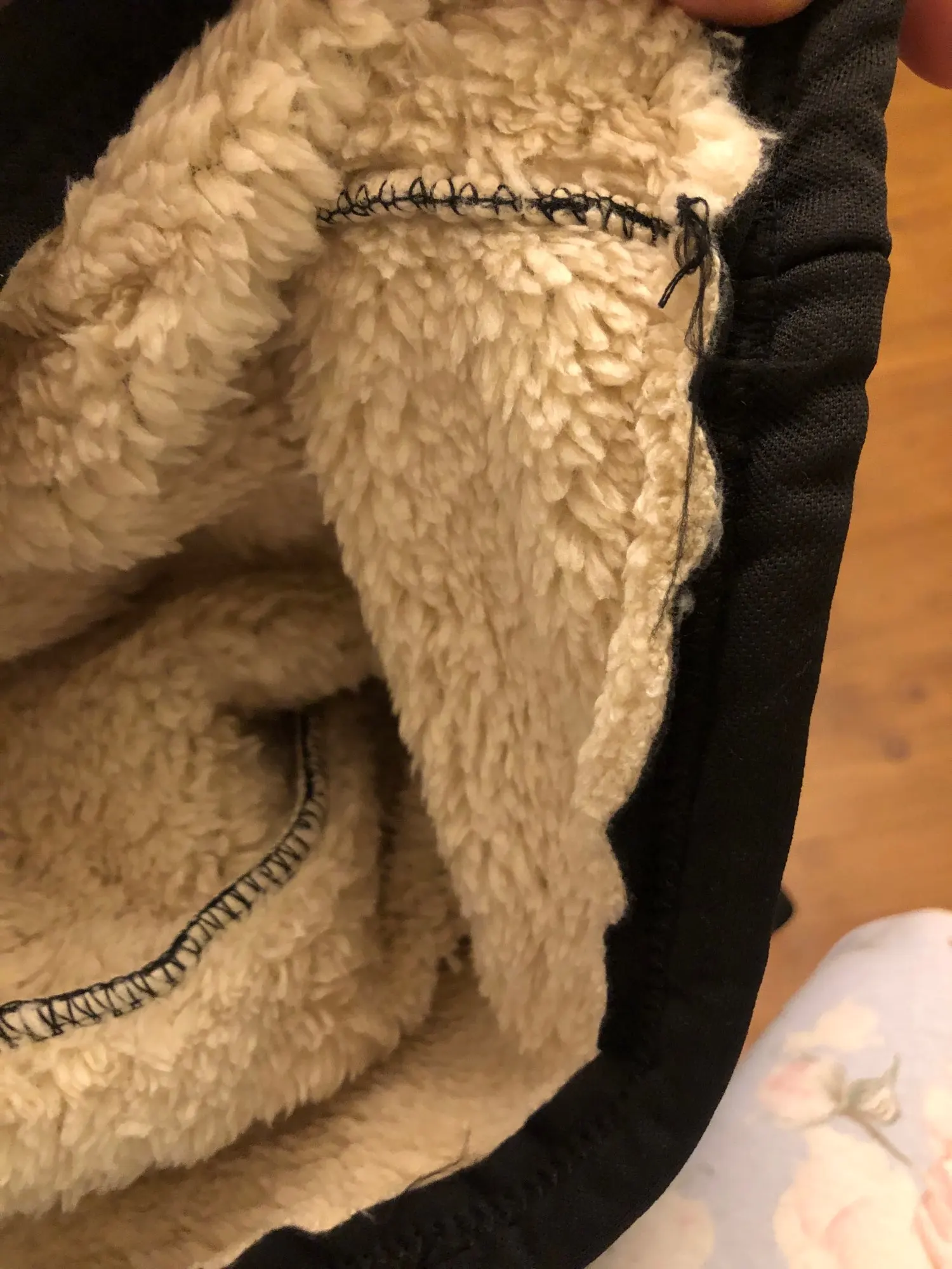 Кофта большая, штаны узкие, маленькие. На короткие и тонкие ноги. Ткань липнет к телу. По фото кажется более теплым. По факту тоньше. В капюшоне мех прошит темными нитками. Все швы видно, нитки торчат. За эту цену качество не очень (( Очень ждали костюм, ожидания не оправдались. Ткань синтетика. Доставка быстрая.