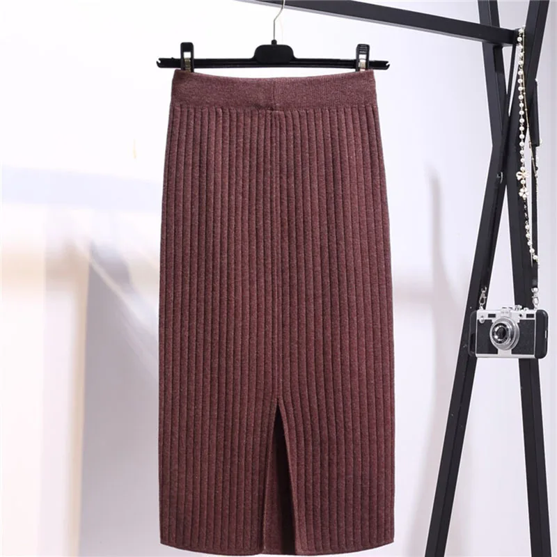 Для женщин осенняя вязанная длинная юбка, сексуальная юбка с завыше...